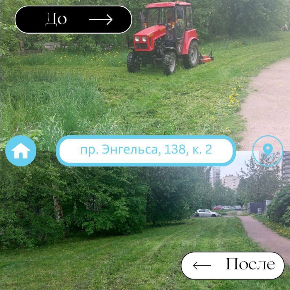 Также трактор с косилкой обрабатывал территорию на ул. Композиторов, 31, к.2;