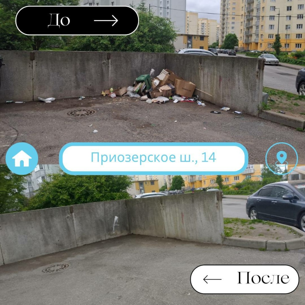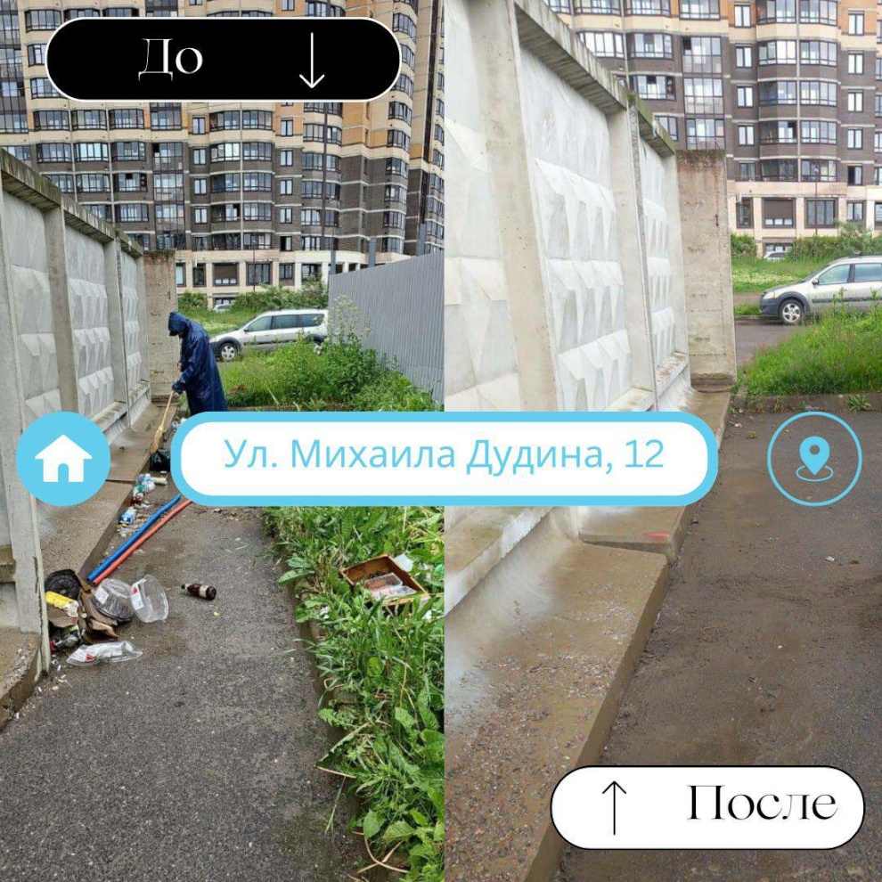 Мы также делимся коллажами с фотографиями территорий этого подразделения в формате "До/После" уборки, которые демонстрируют повседневные трудовые будни. Эти изображения подчеркивают важную работу, которая выполняется ежедневно, однако часто остается вне поля зрения жителей благодаря слаженным усилиям всех сотрудников Жилищного агентства.