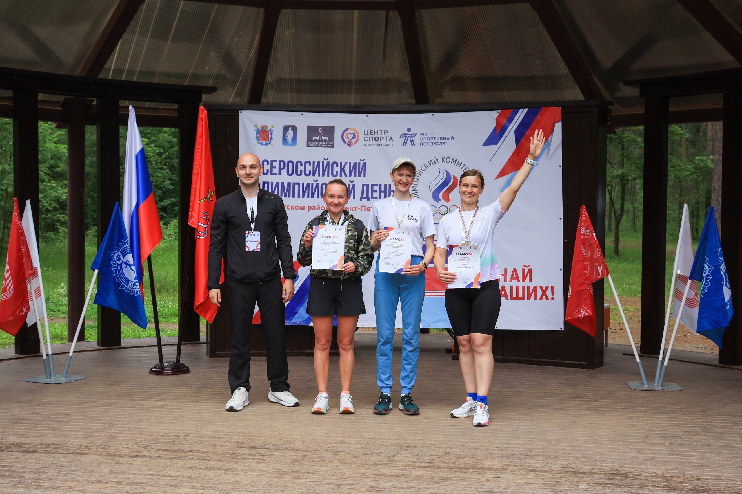 Они поздравили всех присутствующих с праздником – Международным Олимпийским днем, а также наградили победителей Чемпионата Санкт‑Петербурга по спортивному туризму в дисциплине "северная ходьба". В этих соревнованиях участвовали наши спортсмены, занимающиеся в Центре спорта Выборгского района, все из них выполнили спортивные разряды.