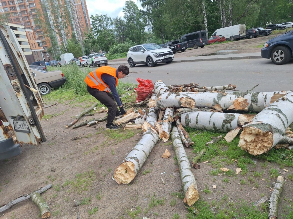 Более 170 деревьев пострадали за период непогоды в Санкт‑Петербурге на территории нашего района. Также повсюду ветер обрывал ветки деревьев и кустарников.