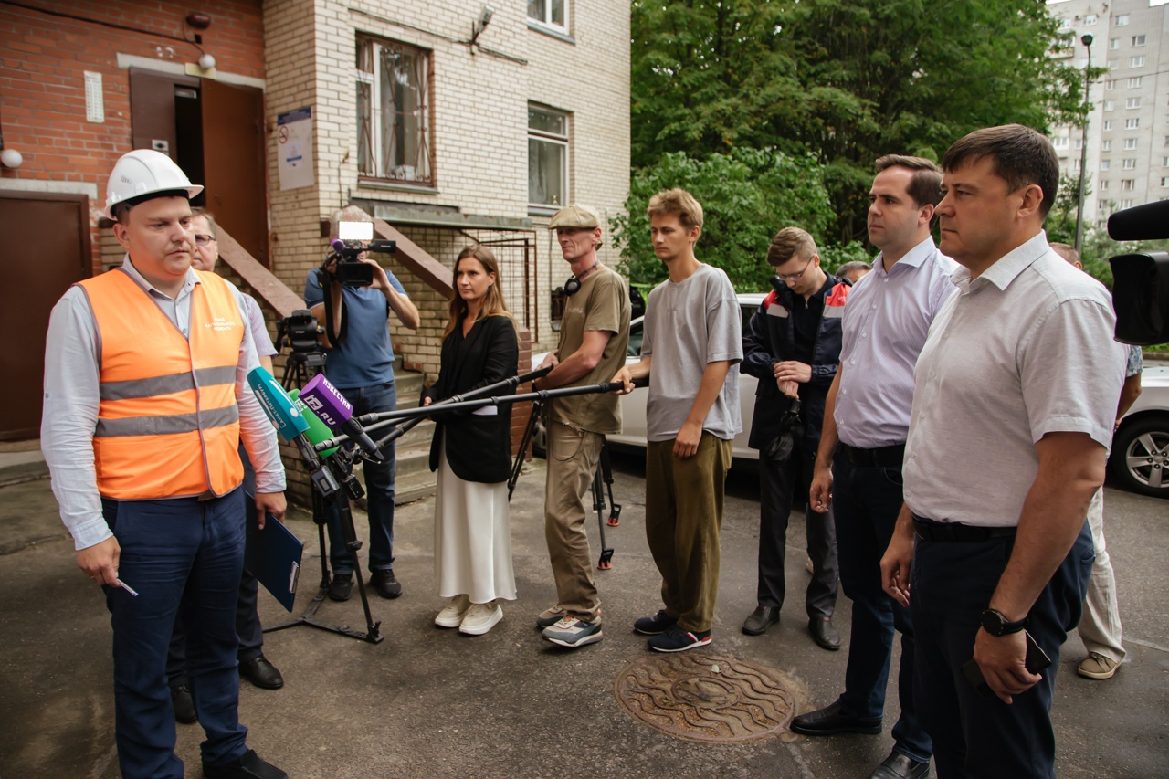 Председатель Жилищного комитета Денис Удод проинспектировал ход капитального ремонта многоквартирных домов в Выборгском районе, а также проверил ремонтируемую базу механизации на улице Есенина, 7.