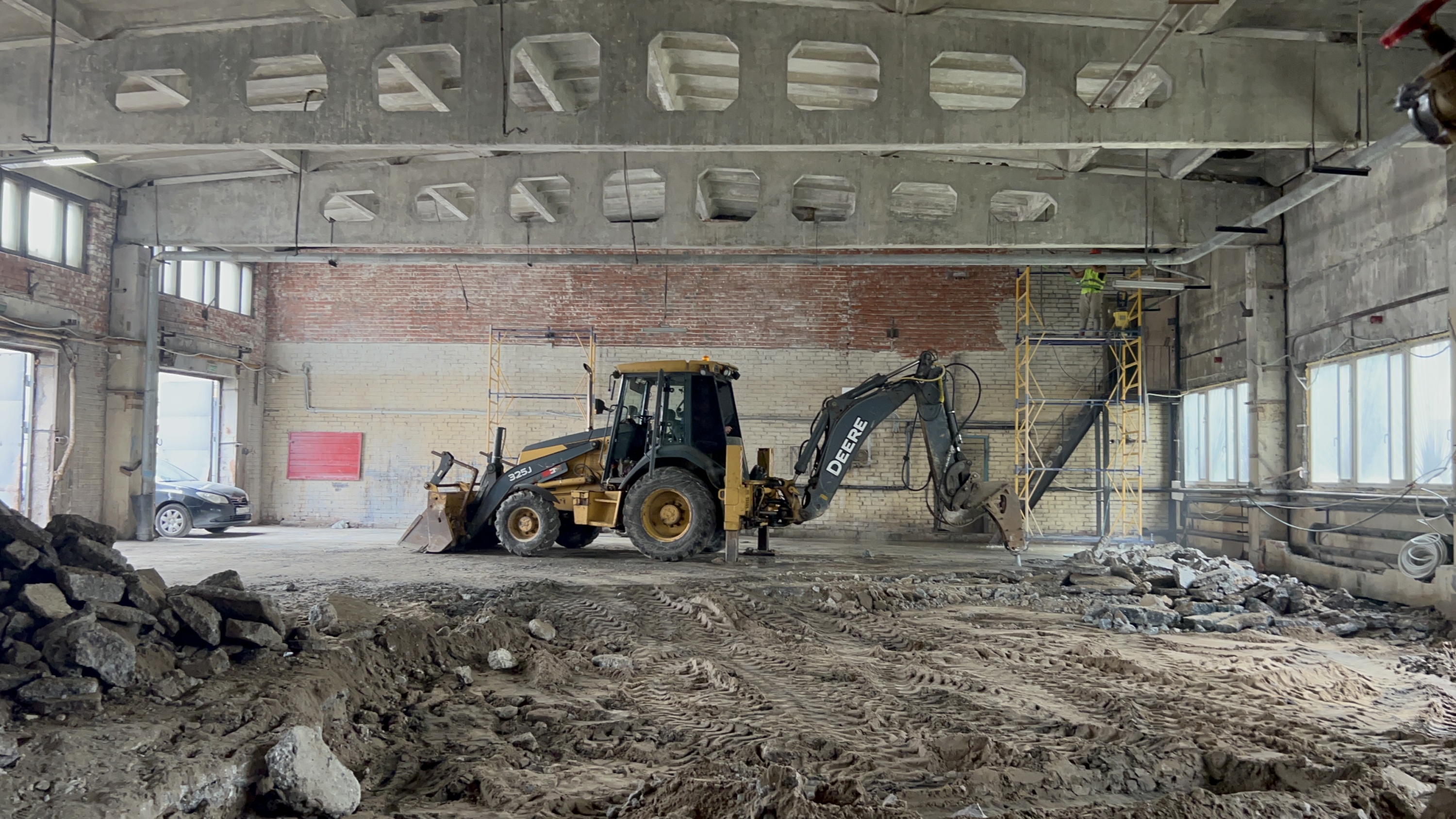 Ремонтируемая площадь помещений базы на улице Есенина, 7 составляет 1 359,9 кв.м. В результате проведения работ будут отремонтированы гаражи для уборочной техники, складские помещения, мастерские, помещения для работников службы механизации, душевые и санузлы.