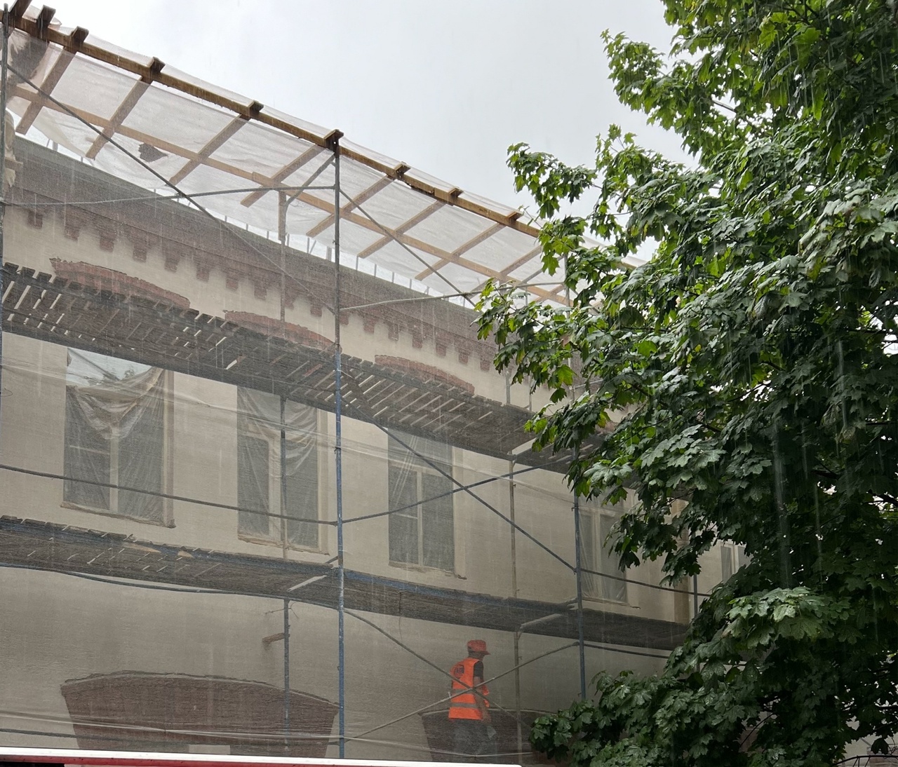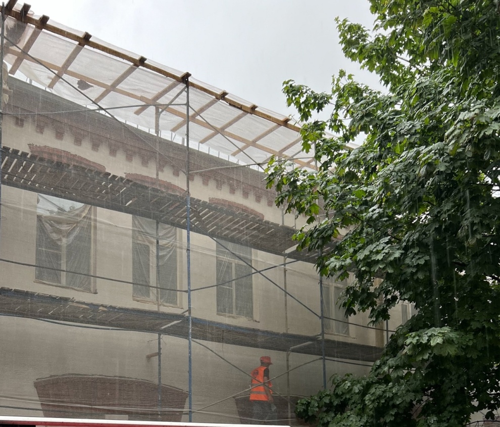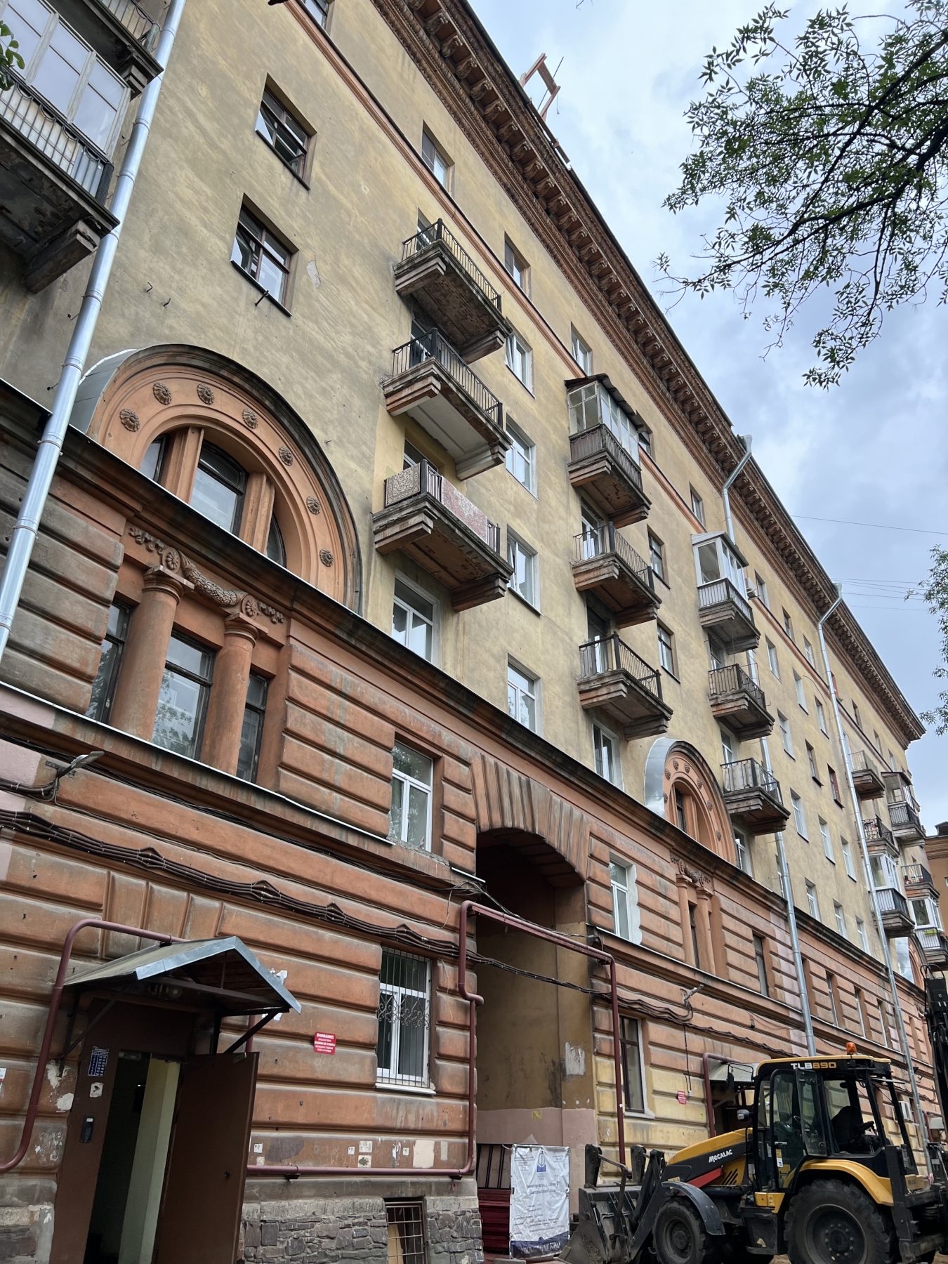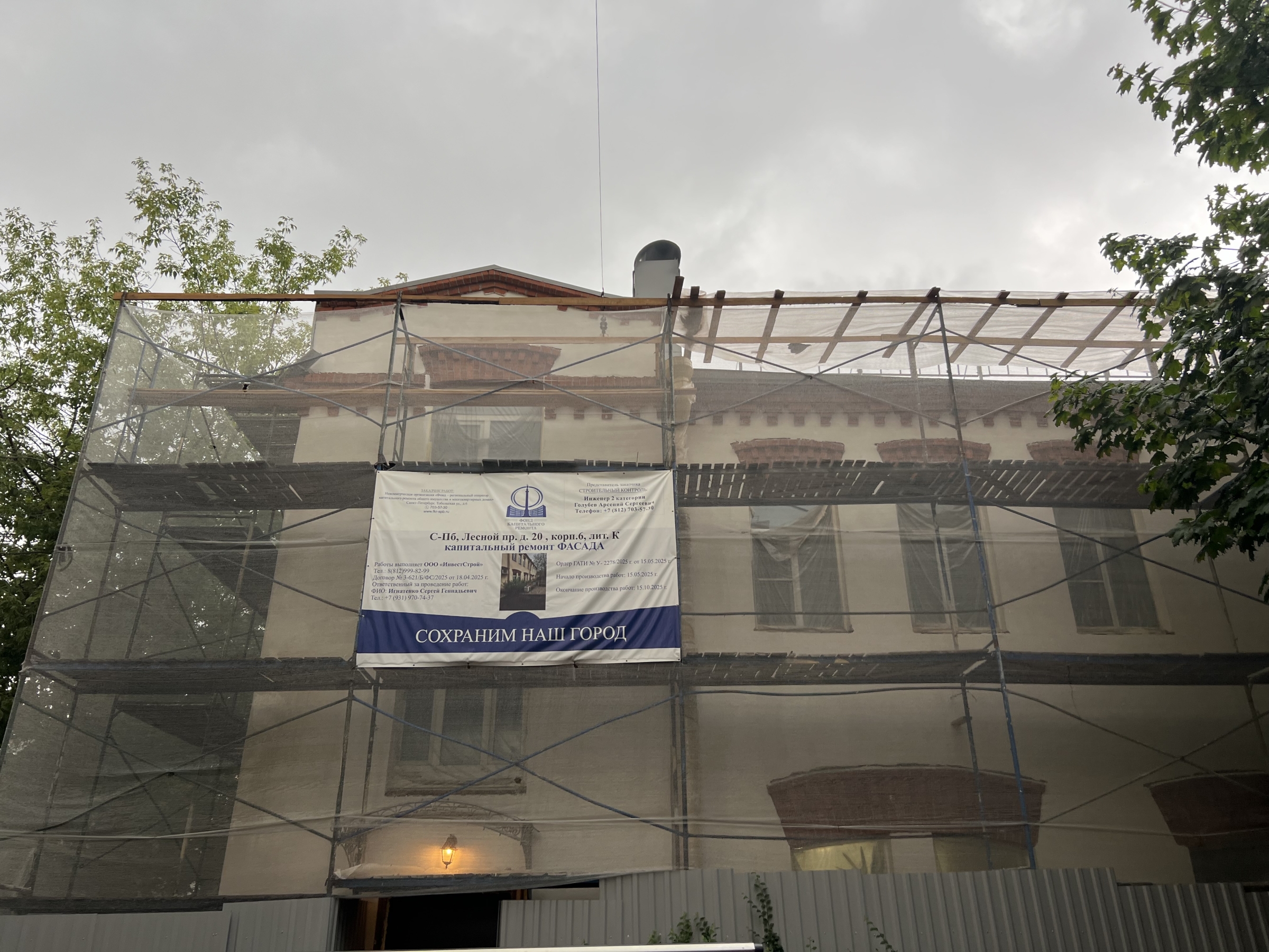 На Лесном проспекте, 20, корпус 6 идет капитальный ремонт фасада многоквартирного дома - объекта культурного наследия в стиле модерна.