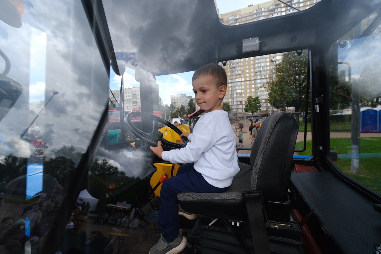 На прошедшем Большом семейном фестивале особой популярностью пользовалась площадка «Город профессий», где были представлены, в том числе, и тракторы Жилищного агентства нашего района.