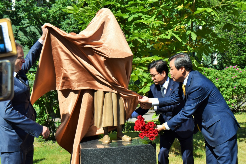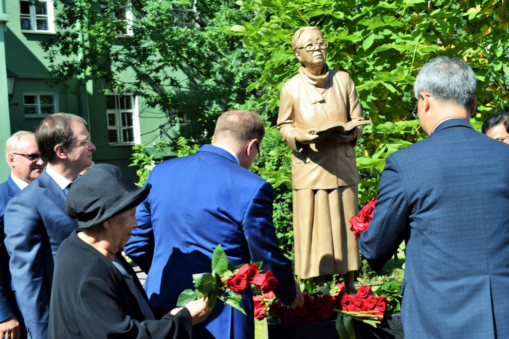 20 июня в Парке современной скульптуры Санкт‑Петербургского государственного университета состоялась церемония открытия памятника выдающейся корейской писательнице XX века Пак Кённи.