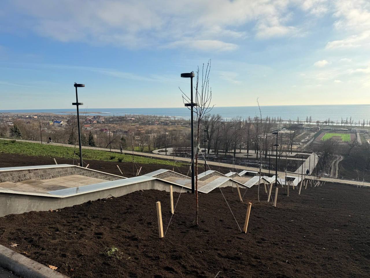 Парк на Комсомольском бульваре — практически готов. Уложены газоны и покрытия, смонтированы площадки, освещение, высажены зелёные насаждения. Осталось завершить укладку асфальта на отдельных участках и установить малые формы. К концу декабря парк откроется для горожан.