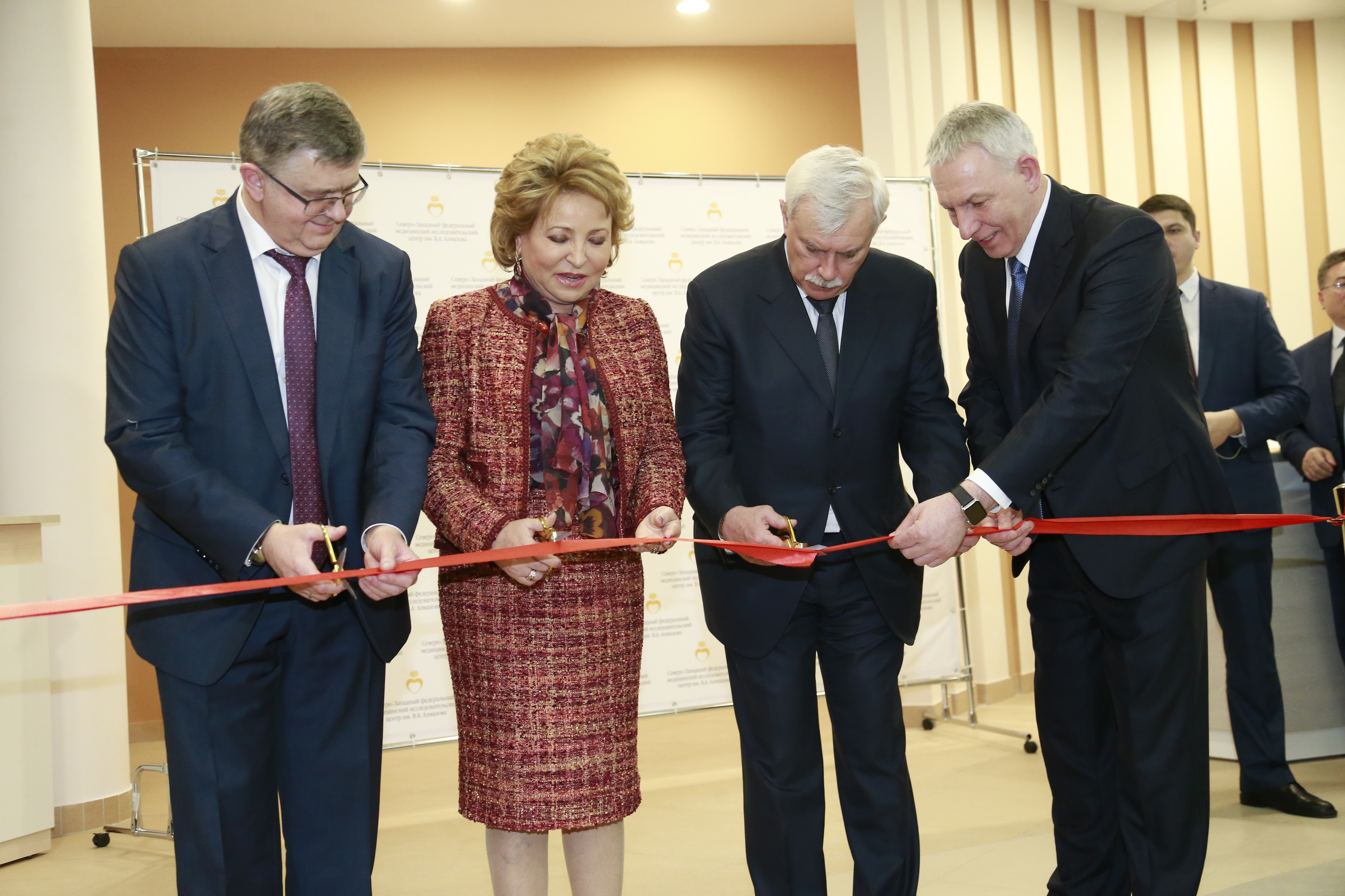 В торжественной церемонии приняли участие губернатор Санкт‑Петербурга Георгий Полтавченко, председатель Совета Федерации Федерального Собрания РФ Валентина Матвиенко, председатель Законодательного Собрания Санкт‑Петербурга Вячеслав Макаров, заместитель Министра здравоохранения РФ Сергей Краевой, генеральный директор центра Евгений Шляхто.