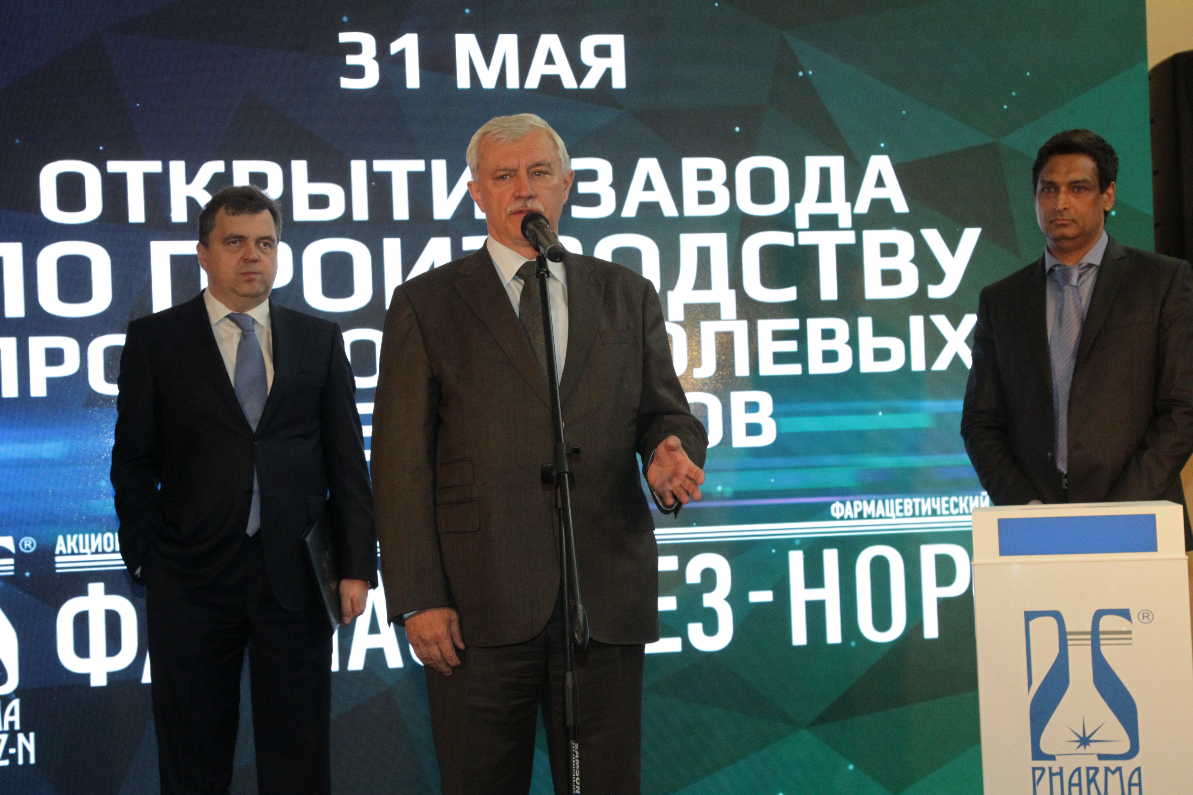 Георгий Полтавченко отметил, что запуск нового производства самой крупной фармацевтической компании России важен не только для нашего города, но и всей страны. На заводе будут выпускаться лекарства для лечения онкологических заболеваний. Губернатор подчеркнул, что теперь не нужно будет тратить большие средства на закупку дорогостоящих препаратов за рубежом. «Это серьёзная экономия, которая позволит вкладывать бюджетные средства в развитие других направлений, в том числе в социальную сферу, строить новые медицинские учреждения», - сказал Георгий Полтавченко. Он отметил, что новый научно-производственный комплекс отвечает самым строгим международным стандартам. Здесь внедрены новейшие технологические линии, что гарантирует высокое качество выпускаемой продукции.