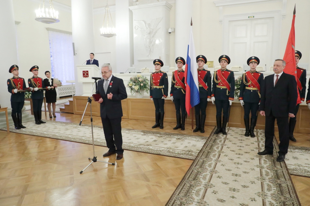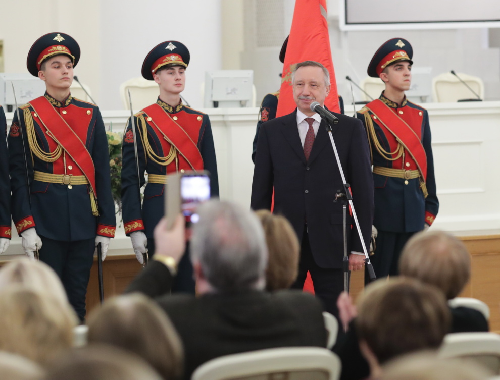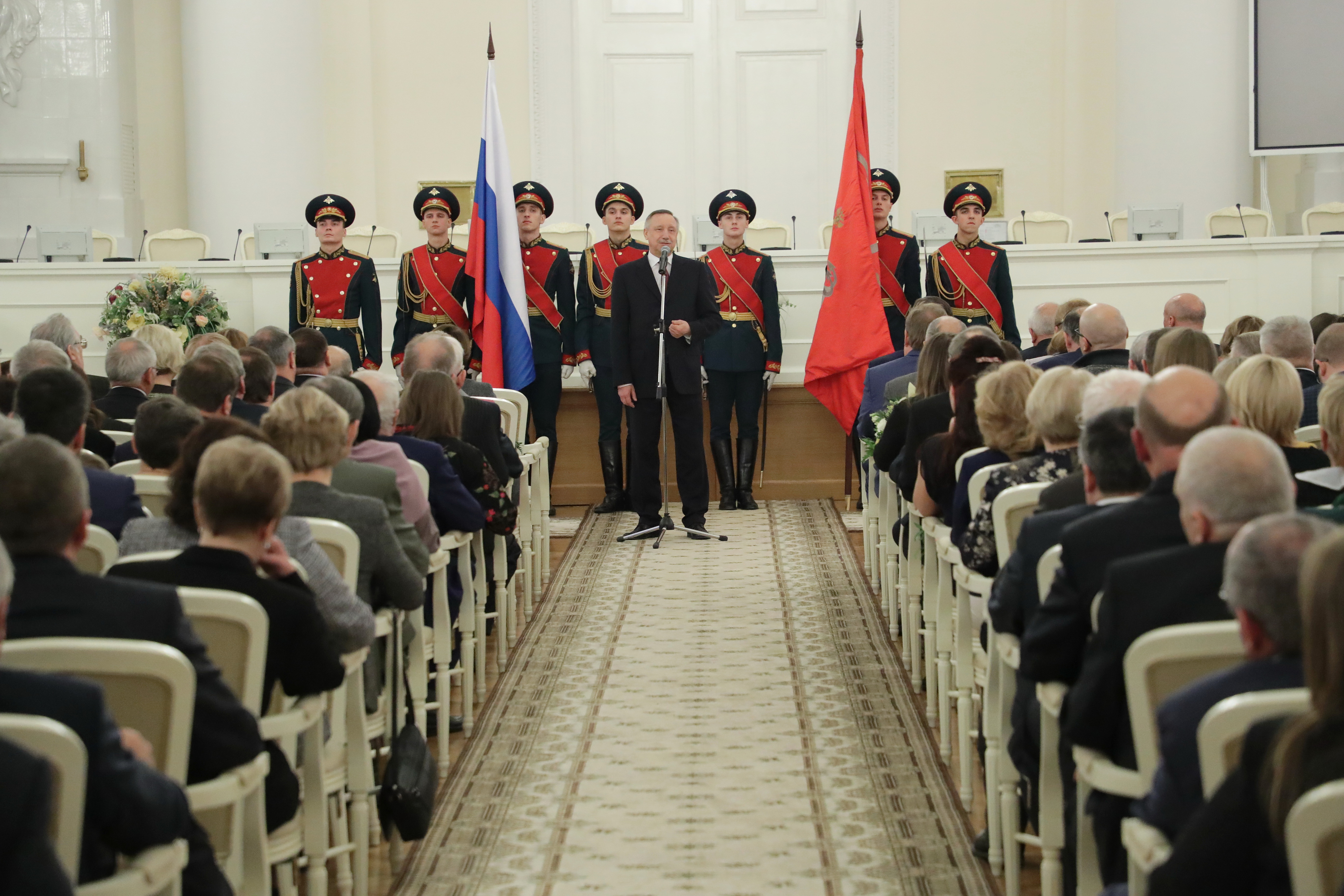 «В этом зале собрались представители разных профессий – учителя, строители, врачи, машиностроители и корабелы. Своим трудом Вы прославляете наш город. Государственные награды – это признание ваших заслуг перед Санкт‑Петербургом и Россией», - сказал действующий Губернатор.