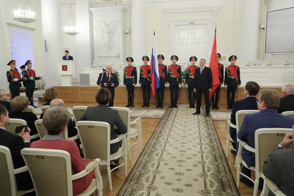 Сегодня в Смольном временно исполняющий обязанности Губернатора Александр Беглов по поручению Президента России вручил государственные награды.