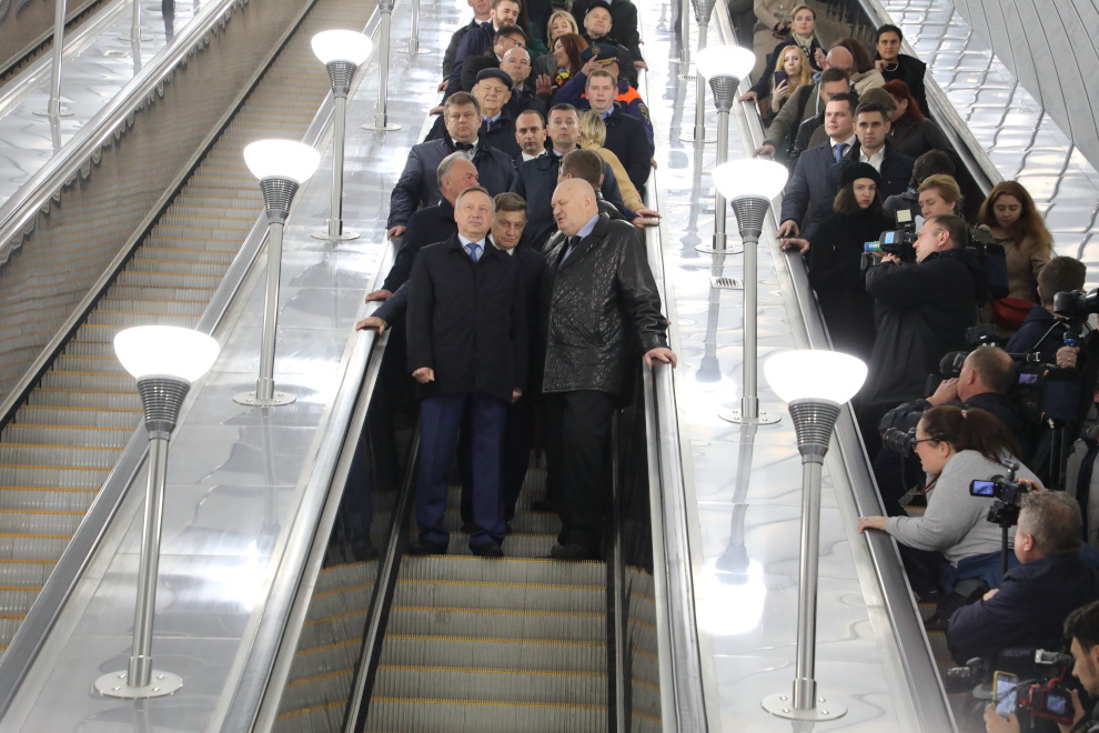 В церемонии открытия также принял участие председатель Законодательного Собрания Вячеслав Макаров. Участники церемонии проехали на метро от «Проспекта Славы» до «Шушар». Александр Беглов проверил, как работают информационные стойки и связь со справочной службой.