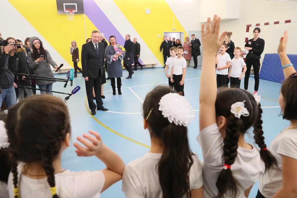 Александр Беглов также посетил школу № 110, которая открылась 1 сентября 2019 года, осмотрел школьные кабинеты, спортивные залы и бассейн. По поручению главы города, которое он дал в марте этого года, возле школы оборудованы дополнительные тротуары и пешеходный переход.