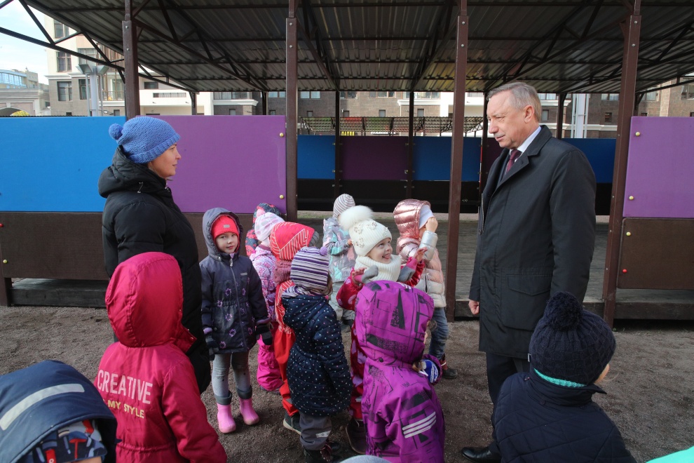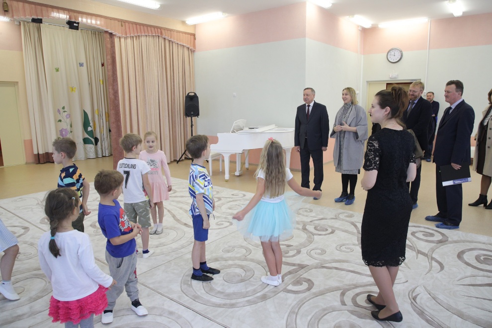 Александр Беглов также побывал в детском саду №4 на Варшавской улице, который принял первых воспитанников 1 сентября. В садике оборудованы игровые комнаты с интерактивными песочницами, спортивный и музыкальный залы, кабинет робототехники. В спортивном зале есть скалодром, в одной из групп установлен сенсорно-динамический комплекс «Дом Совы». Детский сад включен в список объектов, приобретаемых в 2019 году из средств Федерального бюджета.