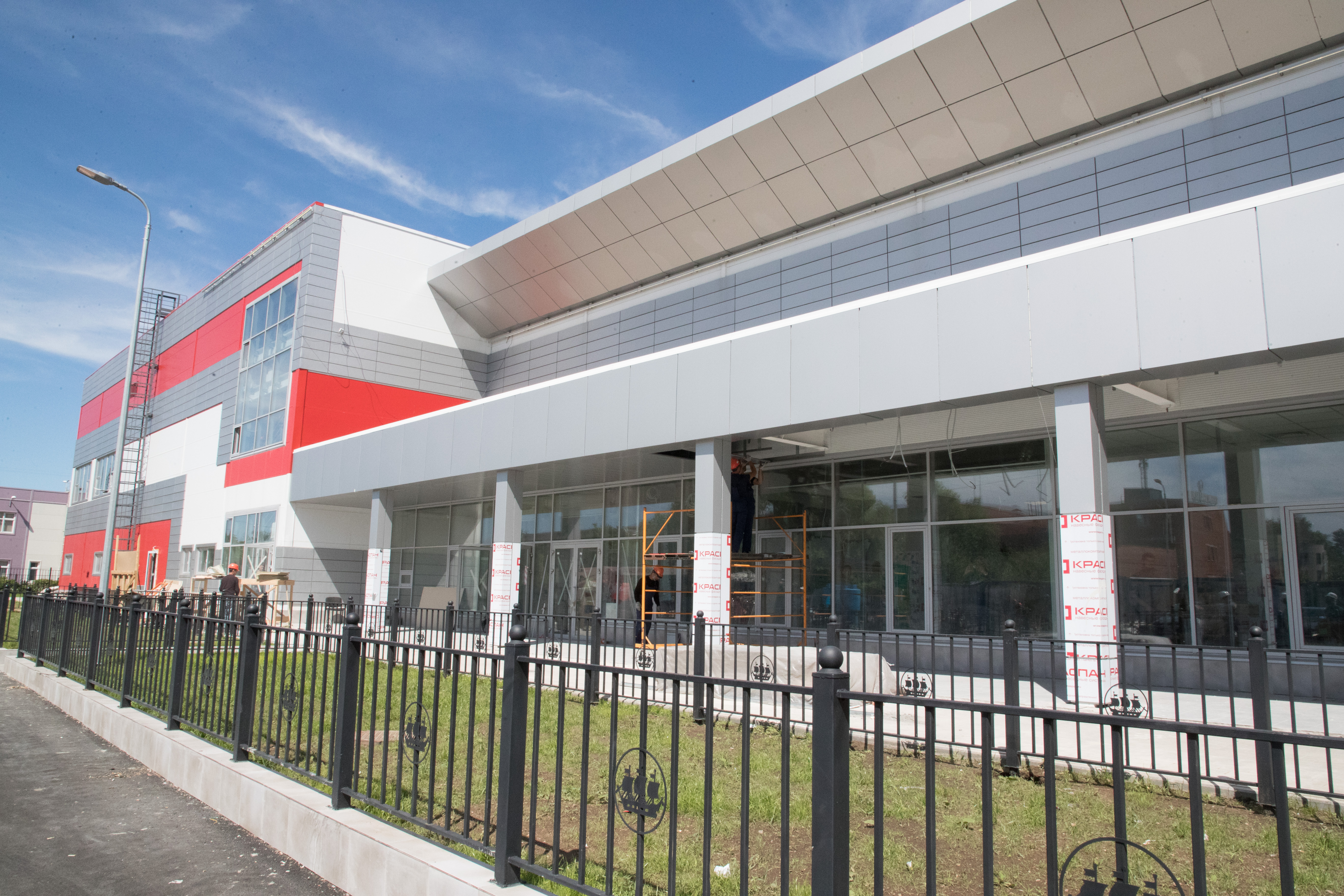 В июле прошлого года на площадку пришел новый подрядчик. В настоящее время на объекте работают 75 человек. Ведутся работы по устройству огнезащиты металлических конструкций, внутренних сетей электроснабжения, внутренней отделке, наружных сетей водоснабжения, канализации, теплоснабжения, благоустройству территории, Строительная готовность - 90%.