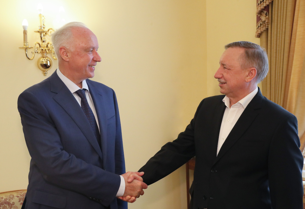 Сегодня в Смольном состоялась рабочая встреча губернатора Александра Беглова и председателя Следственного комитета России Александра Бастрыкина, на которой обсуждались вопросы контроля за реализацией национальных проектов и государственных программ, а также противодействие коррупции.