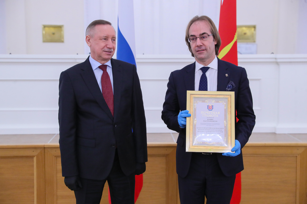 За большой вклад в развитие музыкального искусства Почётной грамотой Губернатора Санкт‑Петербурга был награжден художественный руководитель театра «Мюзик-Холл» Фабио Мастранджело.