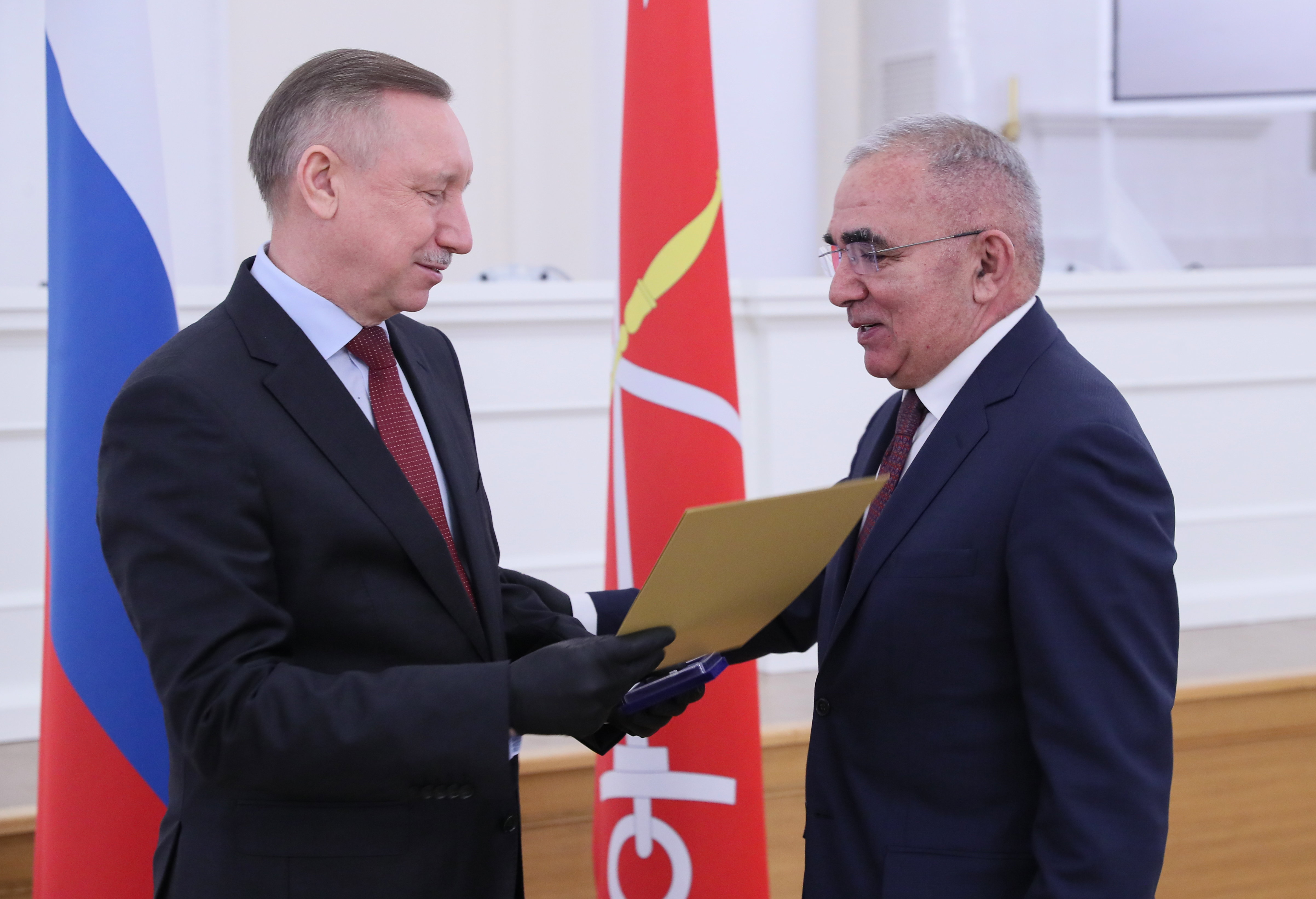 Губернатор также поблагодарил за помощь городу сотрудников аппарата полномочного представителя Президента Российской Федерации в Северо-Западном федеральном округе и вручил им знаки отличия «За заслуги перед Санкт‑Петербургом».