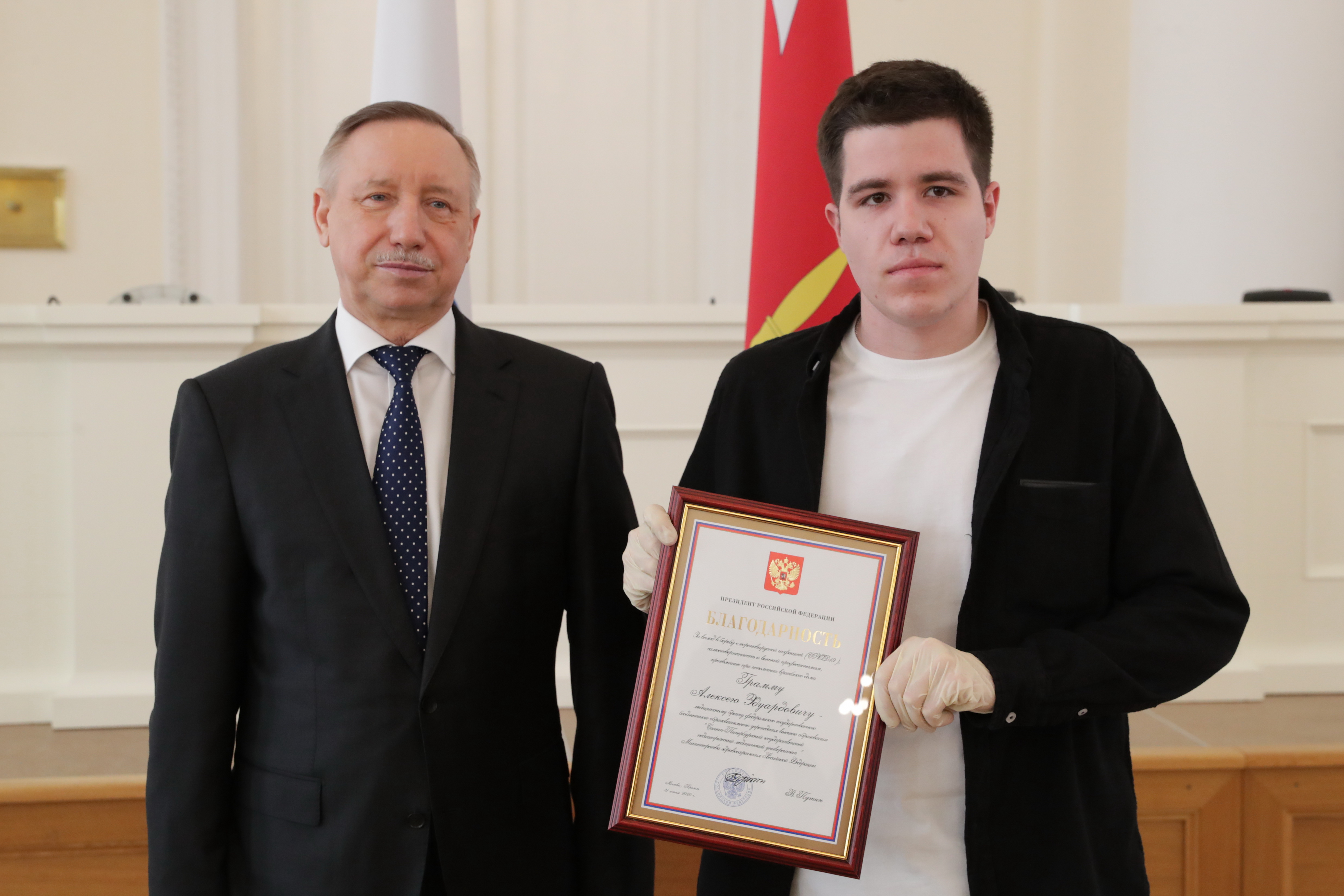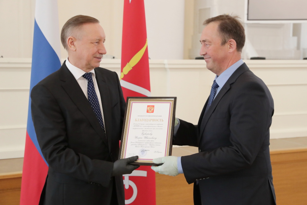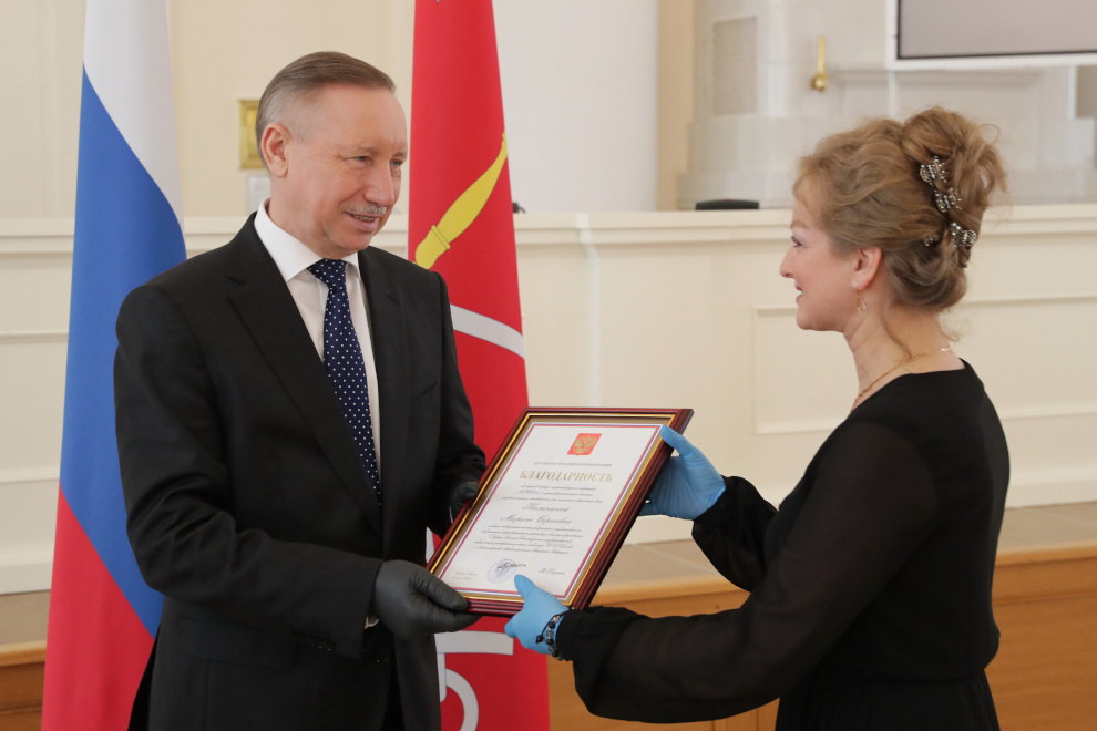 За вклад в борьбу с коронавирусной инфекцией, самоотверженность и высокий профессионализм, проявленные при исполнении врачебного долга, Почетные грамоты и Благодарности Президента Российской Федерации получили 68 сотрудников городских учреждений здравоохранения. Это врачи и медицинские работники Санкт‑Петербургского государственного педиатрического медицинского университета, Северо-Западного государственного медицинского университета им. И.И.Мечникова, Первого медицинского университета им. академика И.П.Павлова, Городской больницы № 40 Курортного района, Клинической инфекционной больницы им. С.П.Боткина, Детской городской клинической больницы № 5 им. Н.Ф.Филатова, Городской больницы № 20, Городской Мариинской больницы, Городской Александровской больницы, Городской больницы Святого Великомученика Георгия, Госпиталя для ветеранов войн, Городской больницы № 38 им.Н.А.Семашко, Детской городской больницы Святой Ольги и Родильного дома № 16.