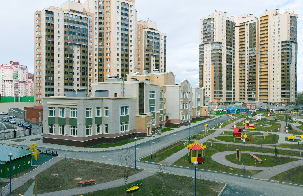 Как и все новые детские сады, этот садик оборудован бассейном, музыкальным и физкультурным залами.