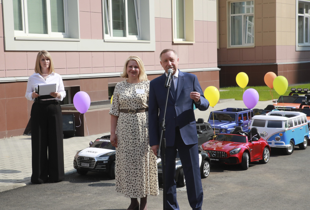 «Сегодня мы открываем детский сад на 265 мест. Мы стараемся, чтобы в каждом детском саду была своя изюминка. Здесь есть своя автошкола. Мы подарили садику электромобили и велосипеды, которые помогут детям осваивать дорожное пространство», – сказал губернатор Александр Беглов.