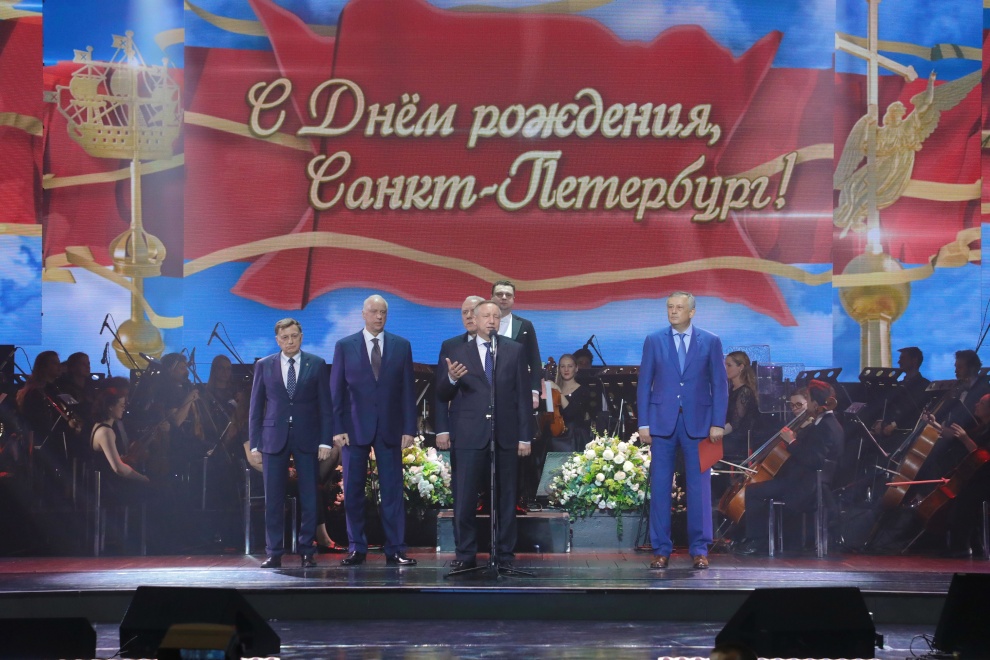 С днем рождения северной столицы жителей Петербурга поздравил губернатор Александр Беглов со сцены БКЗ «Октябрьский». Там состоялся традиционный праздничный концерт, посвящённый Дню города.