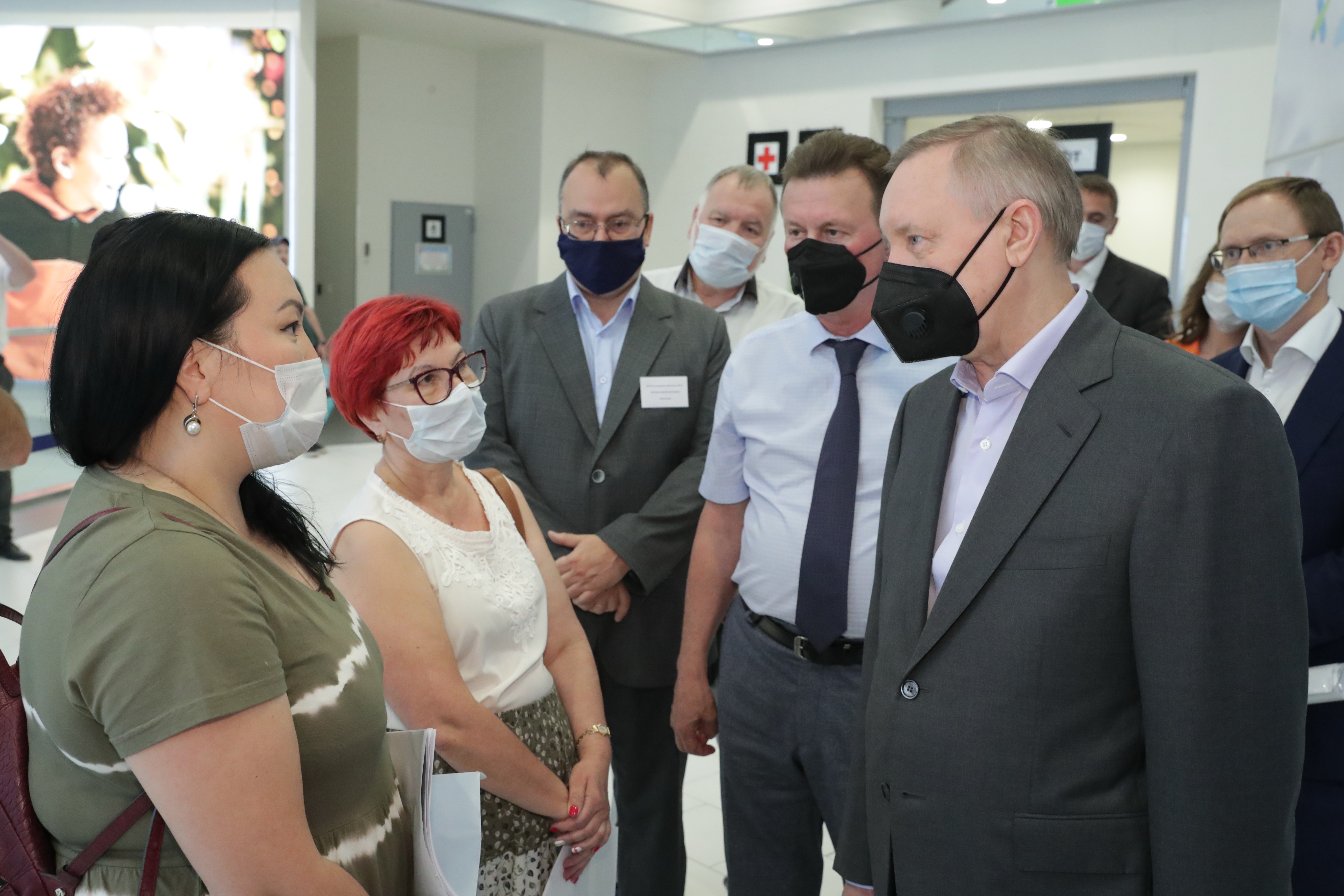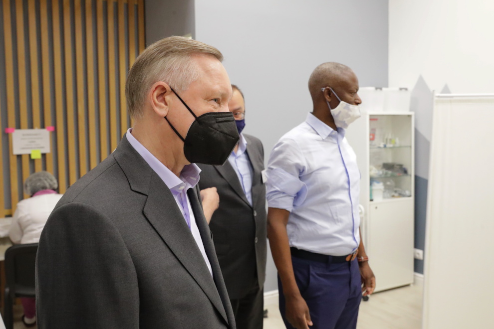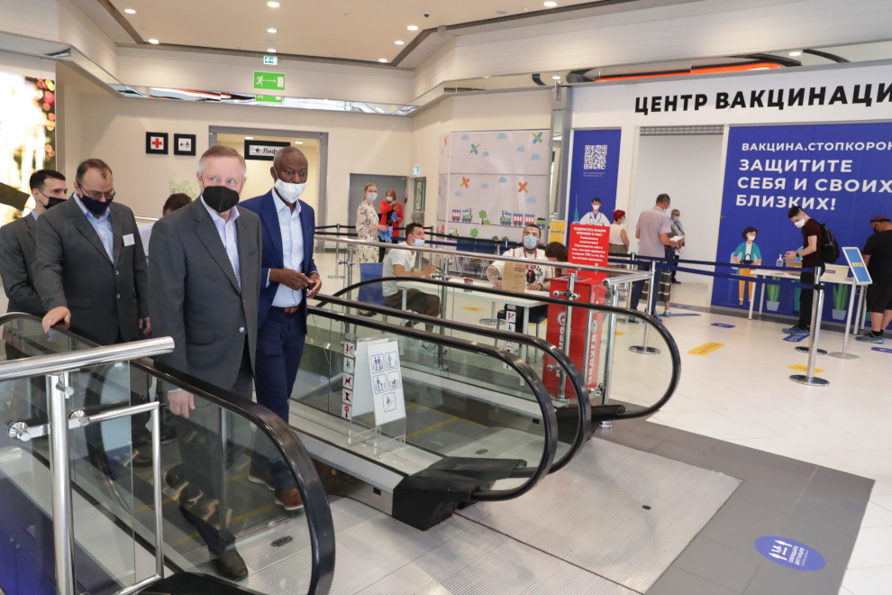 В ходе рабочего объезда Московского района губернатор Александр Беглов посетил ТРК «Питер Радуга», в котором городской поликлиникой №75 организован пункт вакцинации от COVID-19.