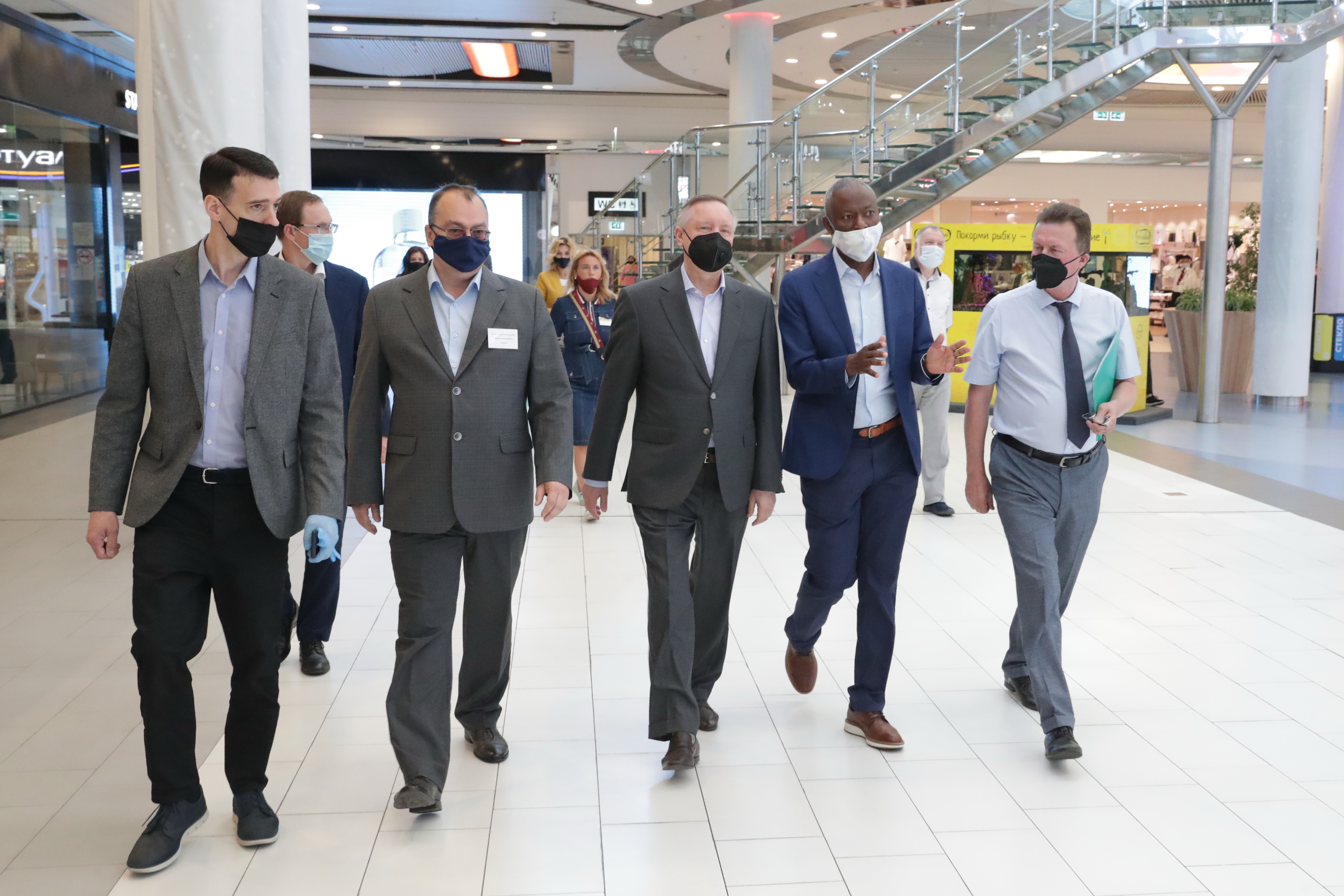 «Питер Радуга» - один из крупнейших торгово-развлекательных комплексов Петербурга. В нем более 250 магазинов, кафе, ресторанов и развлекательных зон. Во время посещения Александр Беглов ознакомился, как организована работа по соблюдению санитарно-эпидемических требований.
