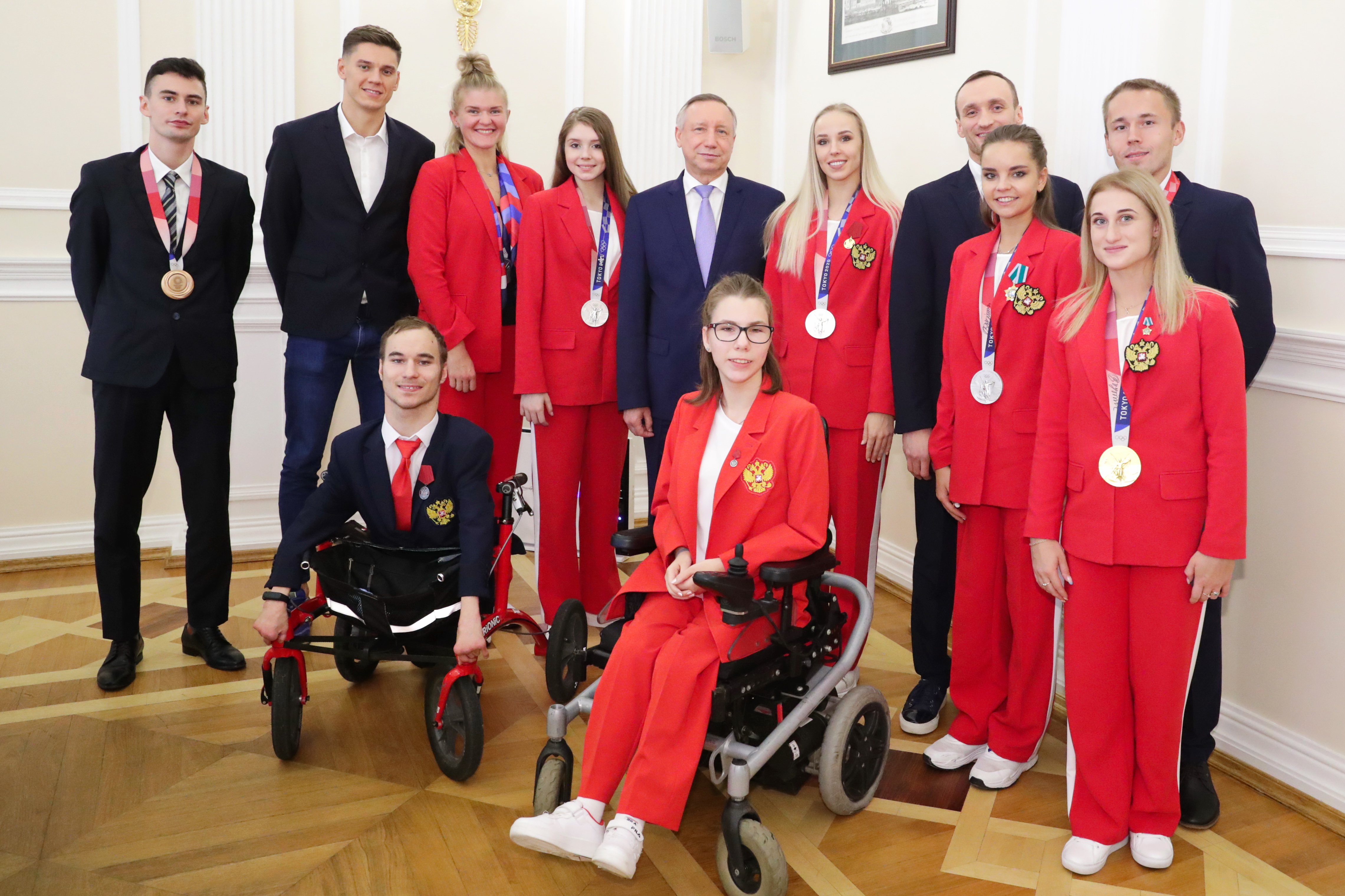 «В Токио вы показали отличные результаты. Олимпийцы завоевали 9 медалей. Паралимпийцы принесли нашему городу 13 медалей. Каждая из них – это огромный труд. У вас не было гимна и флага, но вы защитили честь России! Вы показали спортивный характер Санкт‑Петербурга», - сказал Александр Беглов.