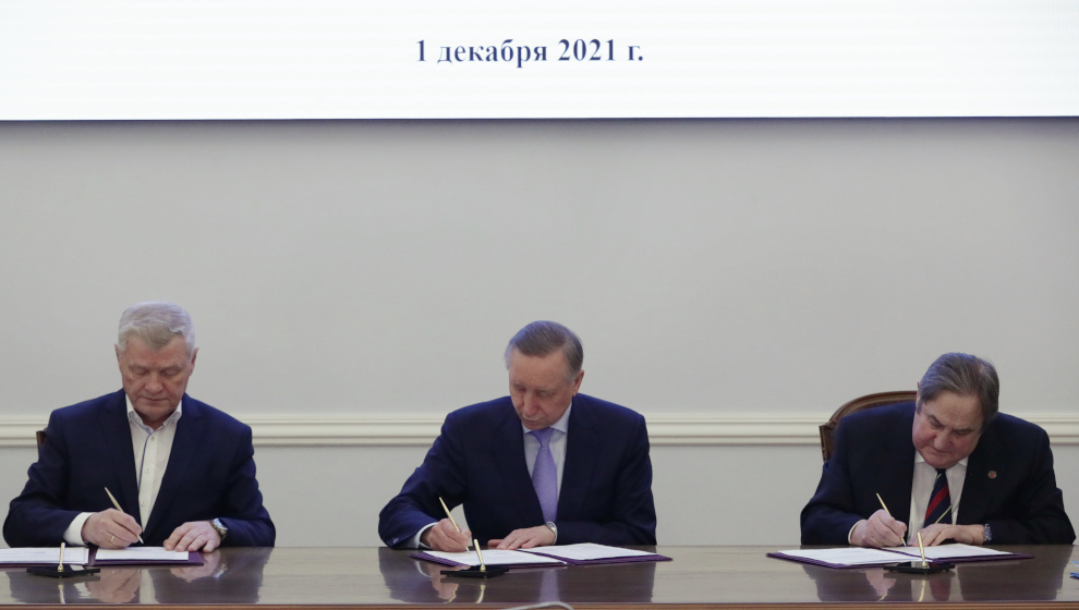 Губернатор Александр Беглов, президент Союза промышленников и предпринимателей Санкт‑Петербурга Анатолий Турчак и председатель Межрегионального объединения организаций профсоюзов «Ленинградская Федерация профсоюзов» Владимир Дербин подписали сегодня в Смольном Региональное соглашение о минимальной заработной плате в Санкт‑Петербурге на 2022 год, утверждающее МРОТ, и Обязательства сторон на 2022 год. Эти документы – приложения к Трехстороннему соглашению Санкт‑Петербурга на 2020-2022 годы.