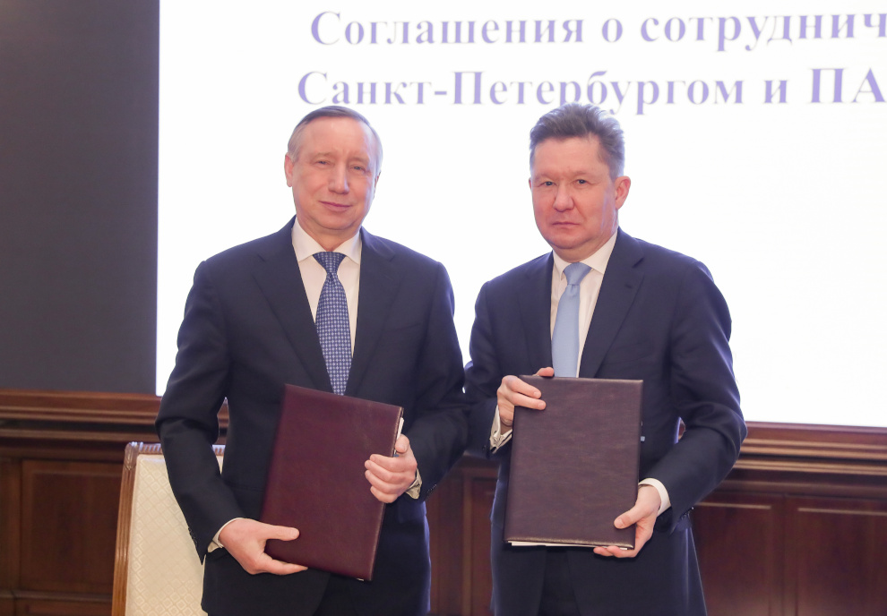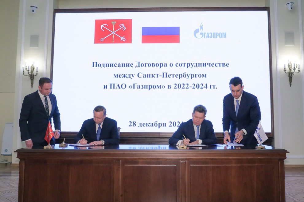 На заседании межведомственного Совета по сотрудничеству между Санкт‑Петербургом и ПАО «Газпром» губернатор Александр Беглов и глава компании Алексей Миллер подписали Соглашение о сотрудничестве на 2022-2024 годы.