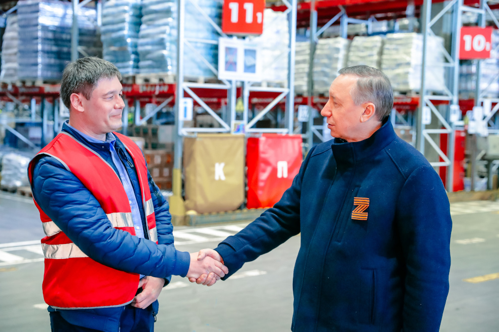 Губернатор Александр Беглов проверил запасы продуктов в оптово-распределительном центре крупной торговой сети X5 Group. Склад площадью 28 тысяч кв. метров обслуживает 900 магазинов на Северо-Западе России. Ассортимент - более 3200 наименований товаров. Как отметили в центре, поставки идут регулярно, поставщики подтвердили свои обязательства.