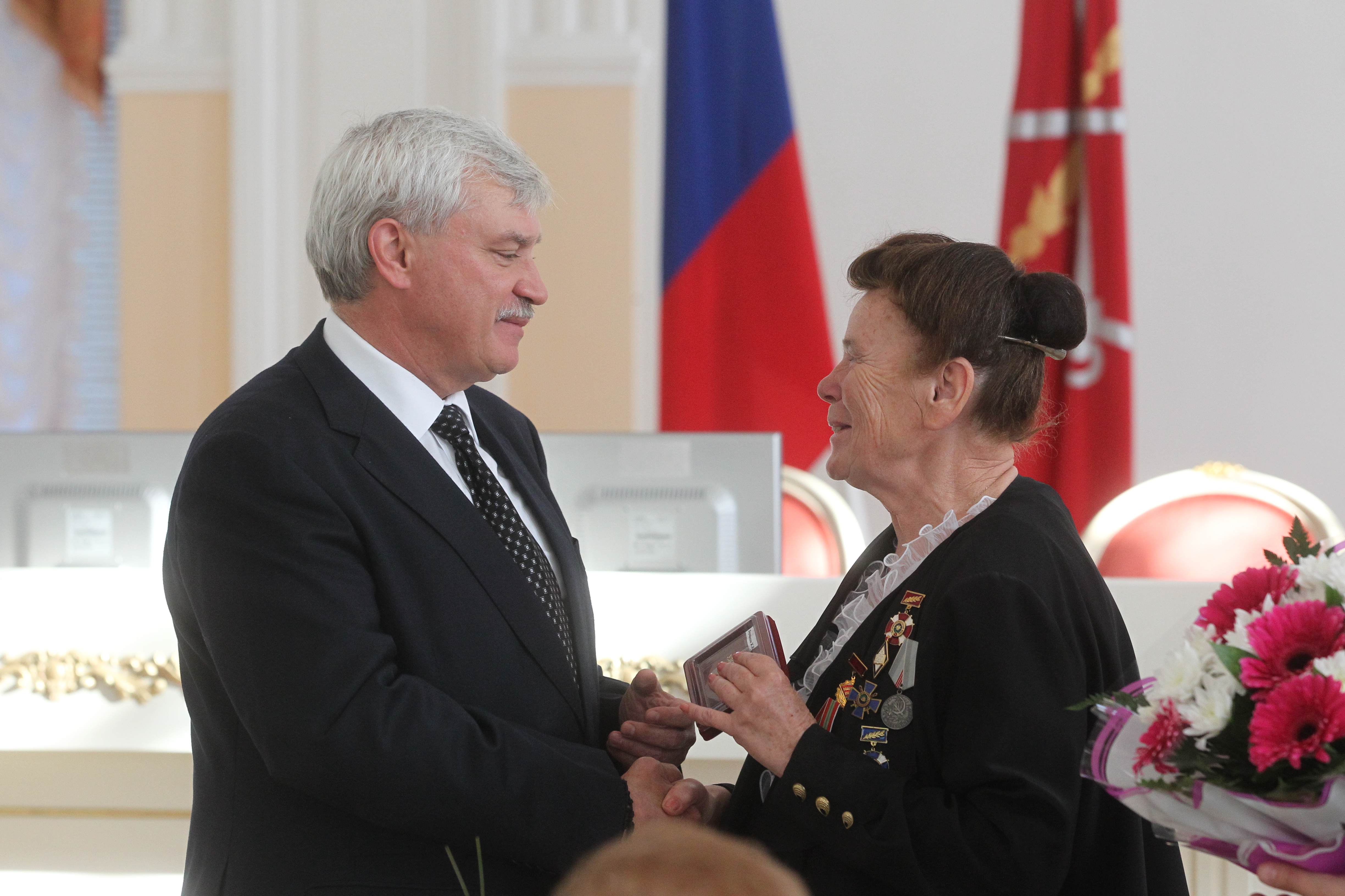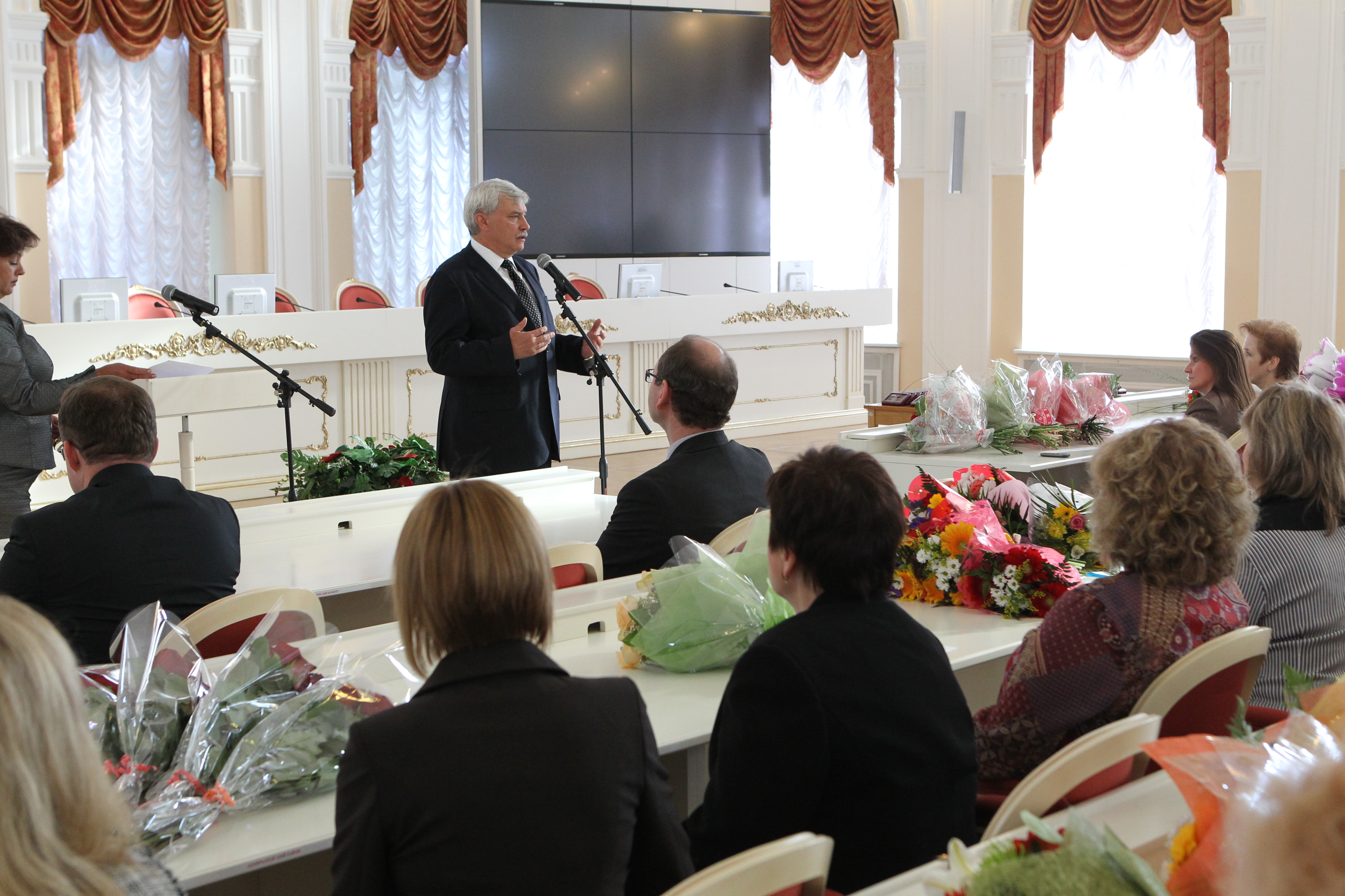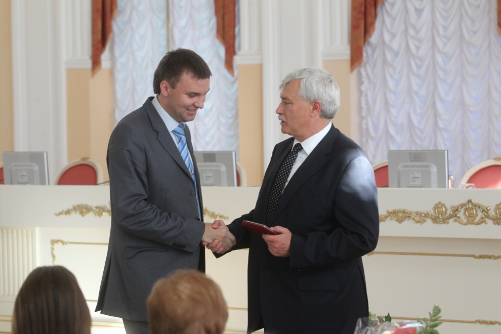 Сегодня в Смольном губернатор Санкт‑Петербурга Георгий Полтавченко вручил ста лучшим работникам образования и культуры нагрудный знак «За гуманизацию школы Санкт‑Петербурга». Губернатор поблагодарил лауреатов за вклад в развитие образования, подчеркнув, что эта награда стала символом общественного признания роли учителя, педагога, воспитателя. «Учителя – это не только профессионально подготовленные люди. Они обладают широкой душой и добрым сердцем, и готовят детей к будущей «большой» жизни», - сказал Георгий Полтавченко. Он отметил, что гуманистический потенциал Санкт‑Петербурга – один из самых высоких в России. Петербургские педагоги не раз становились лауреатами самых престижных конкурсов. В этом году учитель французского языка гимназии №171 Марина Зезкова стала абсолютным победителем Всероссийского конкурса молодых учителей «Педагогический дебют», а учитель математики физико-математического лицея № 239 Вадим Соломин вошел в пятерку финалистов Всероссийского конкурса «Учитель года». Губернатор поздравил лауреатов с заслуженной наградой и с наступающим Днем учителя, который в России отмечается 5 октября.
