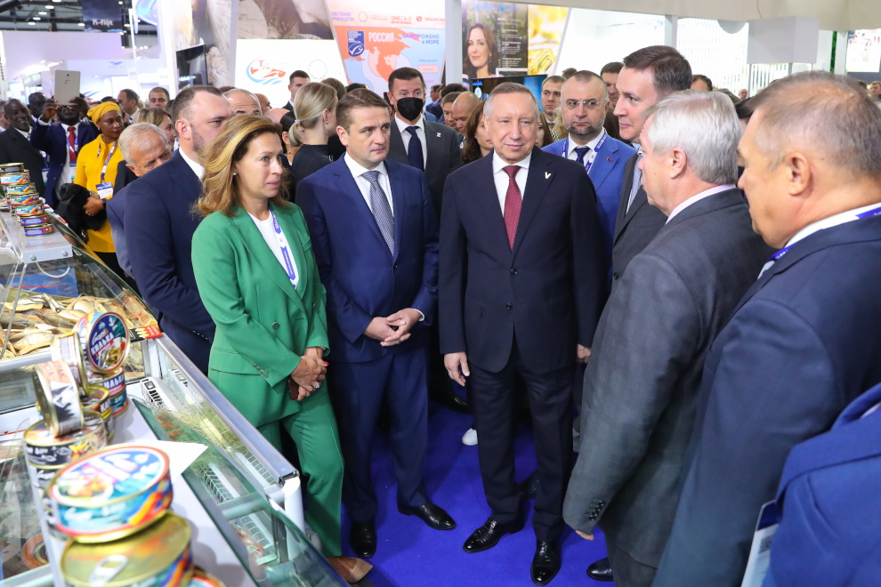 Александр Беглов отметил, что Санкт‑Петербург играет важную роль в развитии судостроения и рыбодобывающей отрасли. На форуме и выставке свои стенды представили около 60 петербургских организаций.