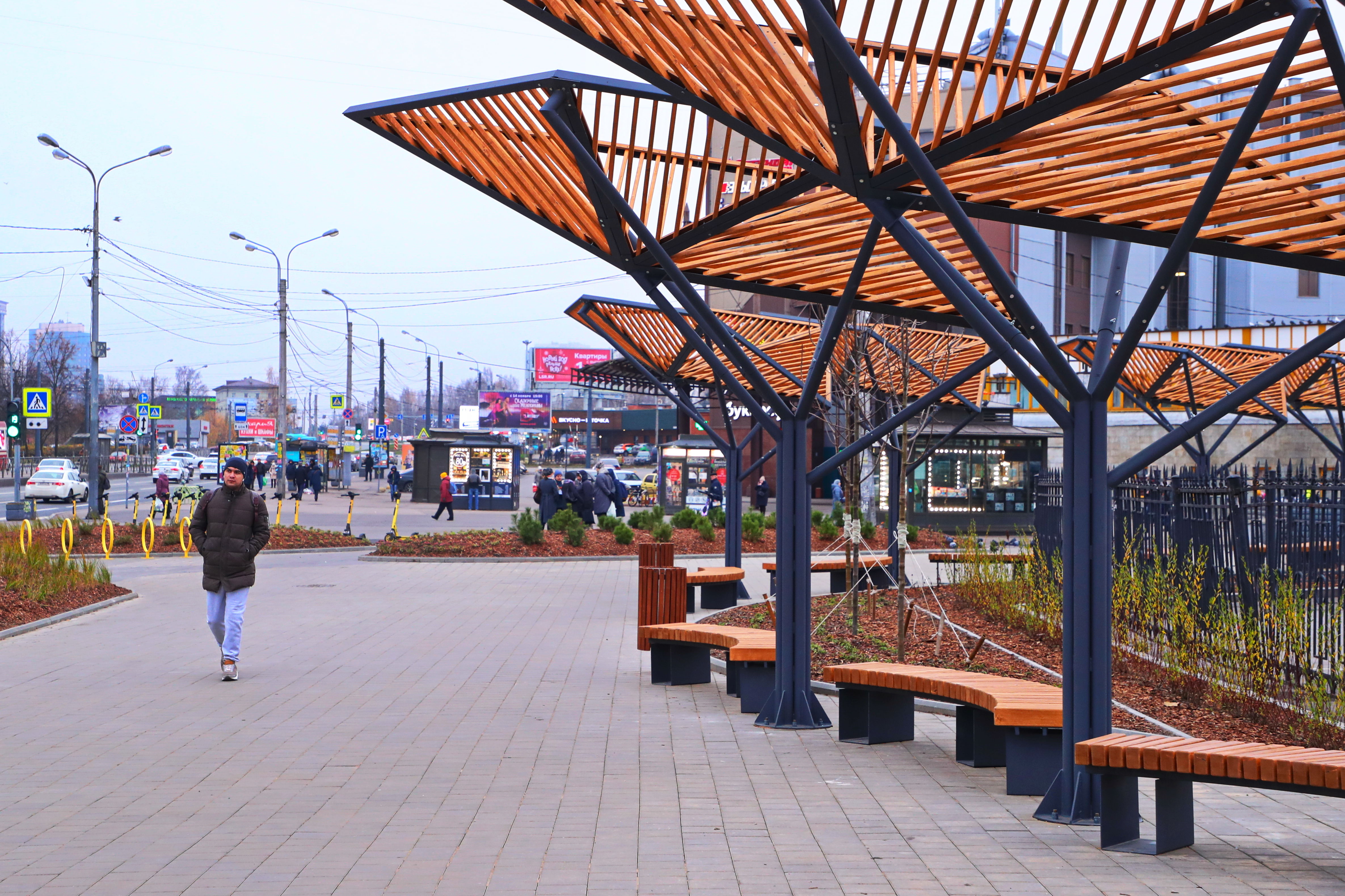 Общая площадь работ составила 2 700 квадратных метров. На почти половине территории выполнено мощение площадок и дорожек. Для жителей организованы зоны отдыха с уличной мебелью – скамейками с навесами, подиумами, велопарковками.