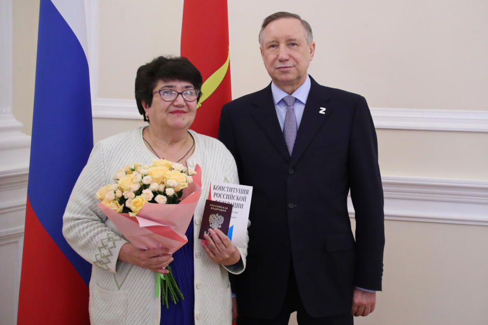 Губернатор Александр Беглов вручил в Смольном паспорта жителям Мариуполя, принятым в гражданство Российской Федерации. Обладателями новых паспортов стали пожилые люди, оказавшиеся в сложной жизненной ситуации. Многие из них потеряли жилье, имеют проблемы со здоровьем. Они прибыли в Петербург в январе этого года и временно разместились в Доме ветеранов войны и труда №1. Всем гостям обеспечено проживание в отдельных комнатах, питание, медицинское и социальное обслуживание, организация досуга. Также им оказывается содействие в оформлении необходимых российских документов.
