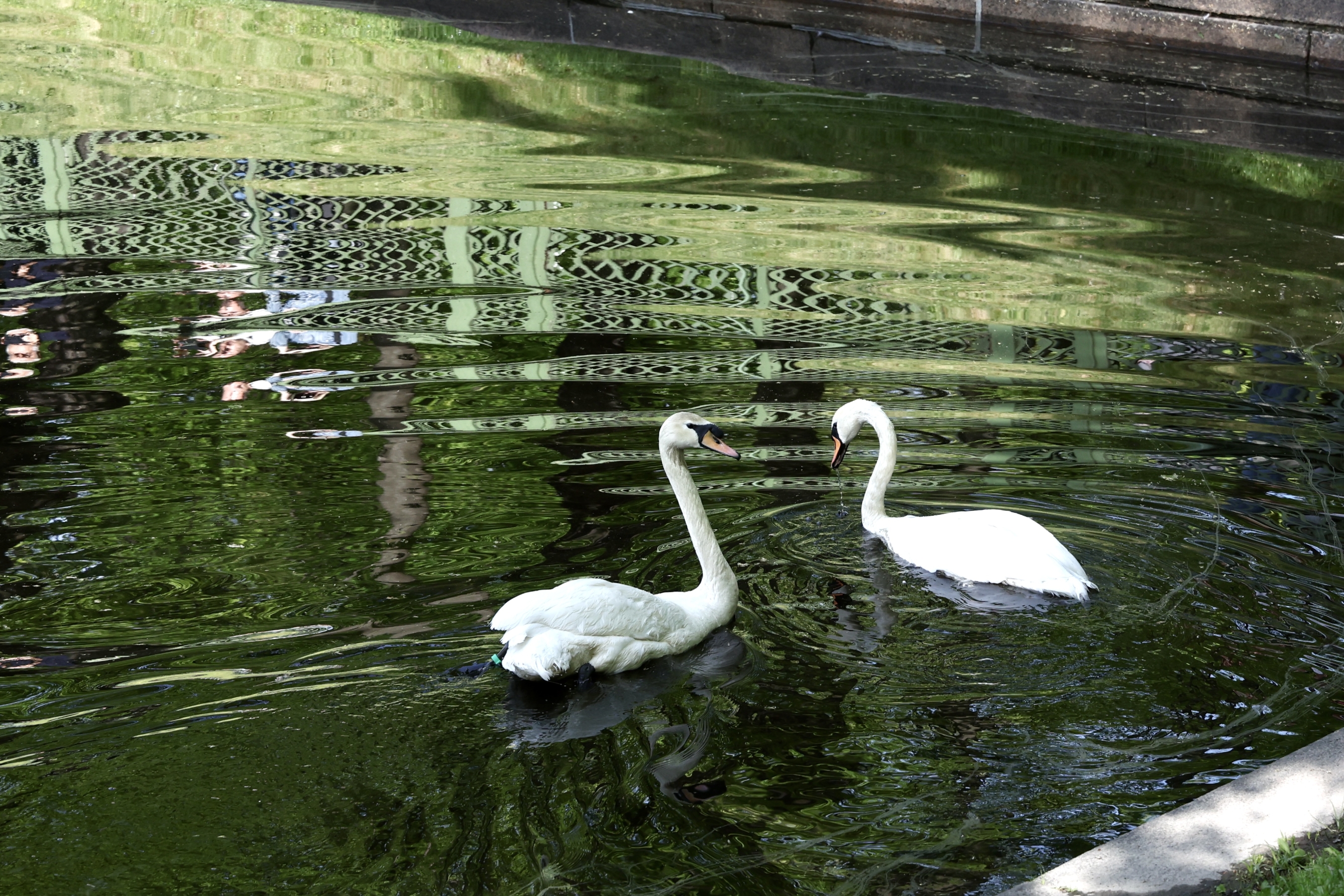 Пара белых лебедей Елисей и Любава вновь вернулись в Летний сад после зимовки в зоопарке. По традиции лебединую пару, обживающуюся в летней резиденции на Карпиевом пруду, навестил губернатор Александр Беглов.