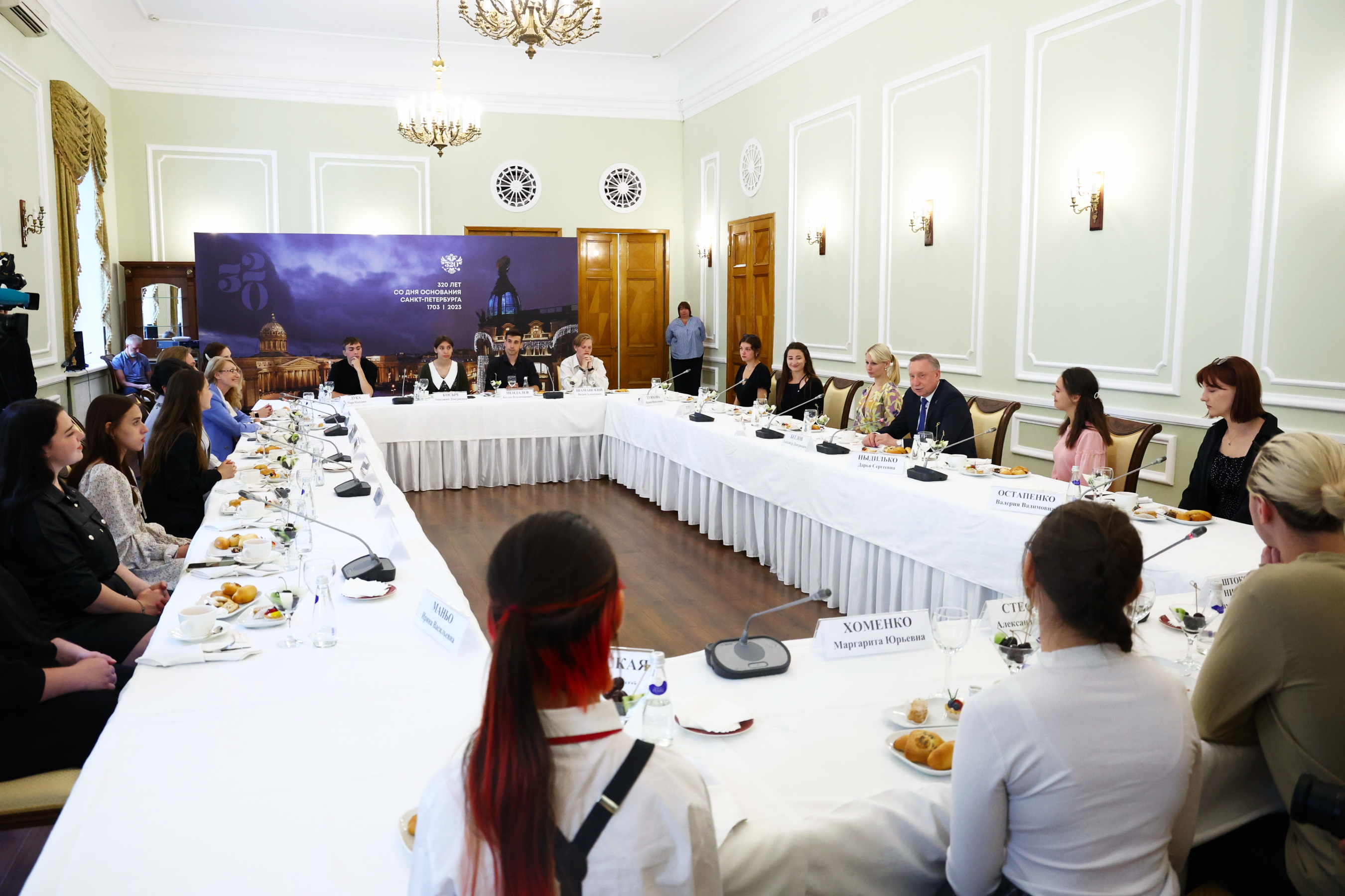 Губернатор Александр Беглов встретился в Смольном с выпускниками школ из Донецкой Народной Республики.