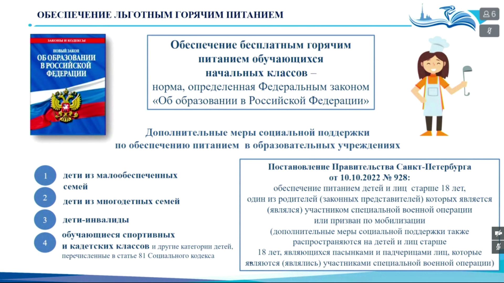 Решением Правительства Санкт‑Петербурга бесплатное питание также предоставляется детям, пасынкам и падчерицам участников СВО.