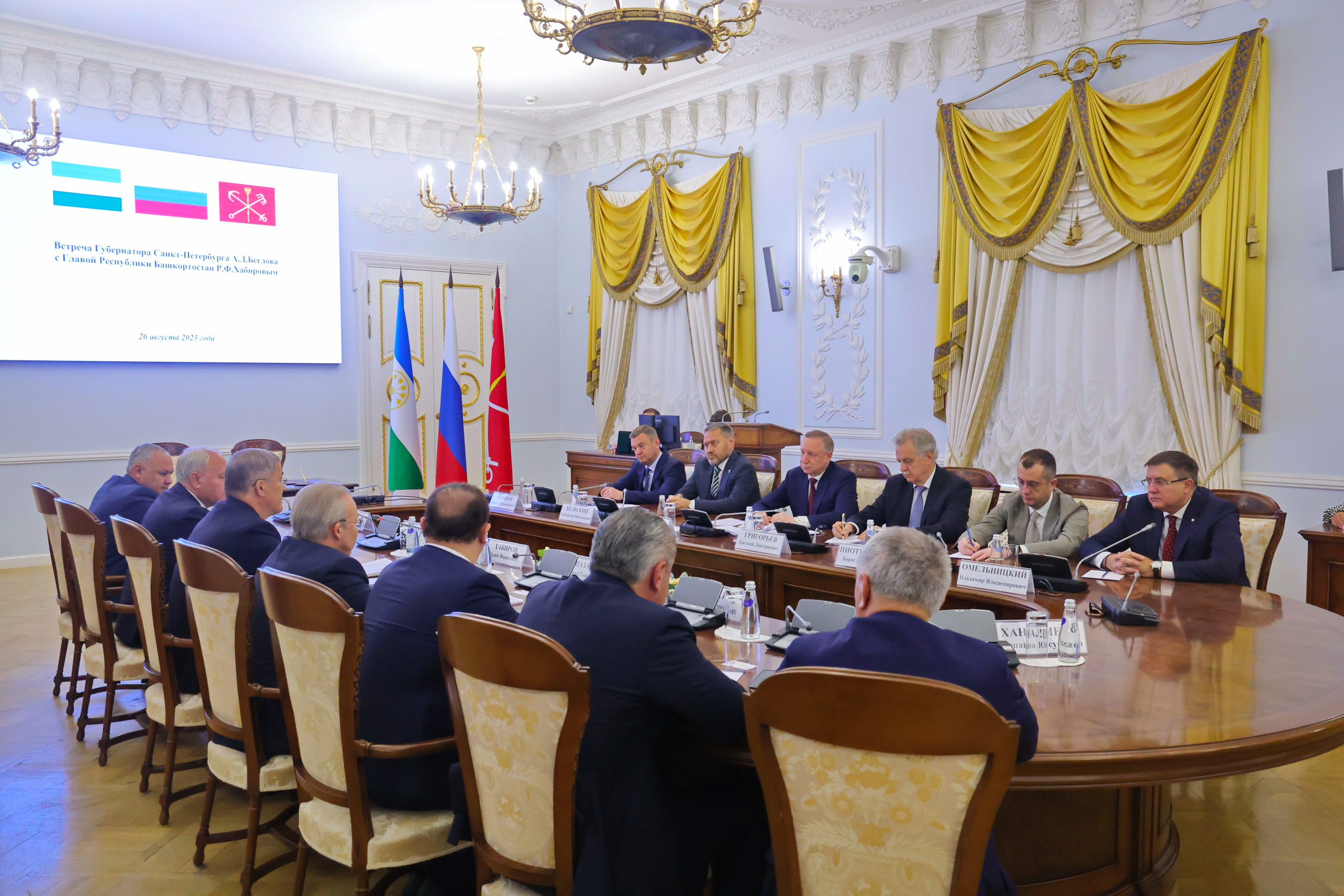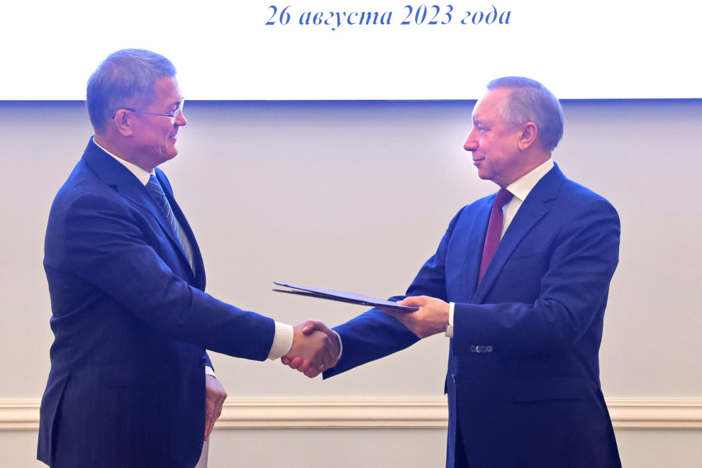 Губернатор Александр Беглов и глава Республики Башкортостан Радий Хабиров подписали в Смольном План мероприятий – дорожную карту по развитию сотрудничества между регионами на 2024-2027 годы. Встреча состоялась в рамках Дней Республики Башкортостан в Санкт‑Петербурге.
