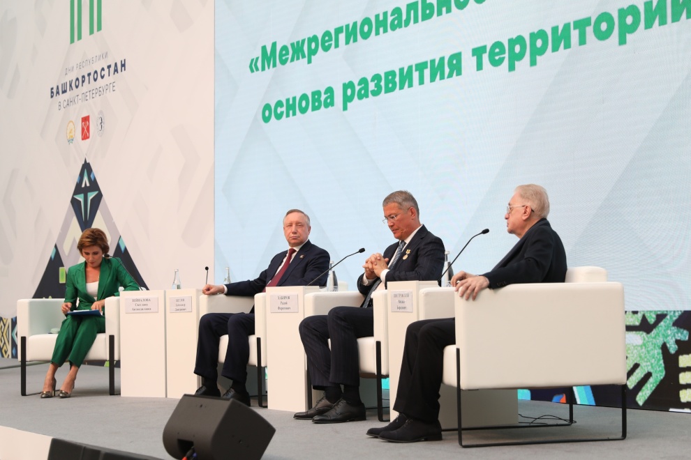 Губернатор Александр Беглов и глава Республики Башкортостан Радий Хабиров приняли участие в пленарном заседании «Межрегиональное партнёрство – основа развития территорий».