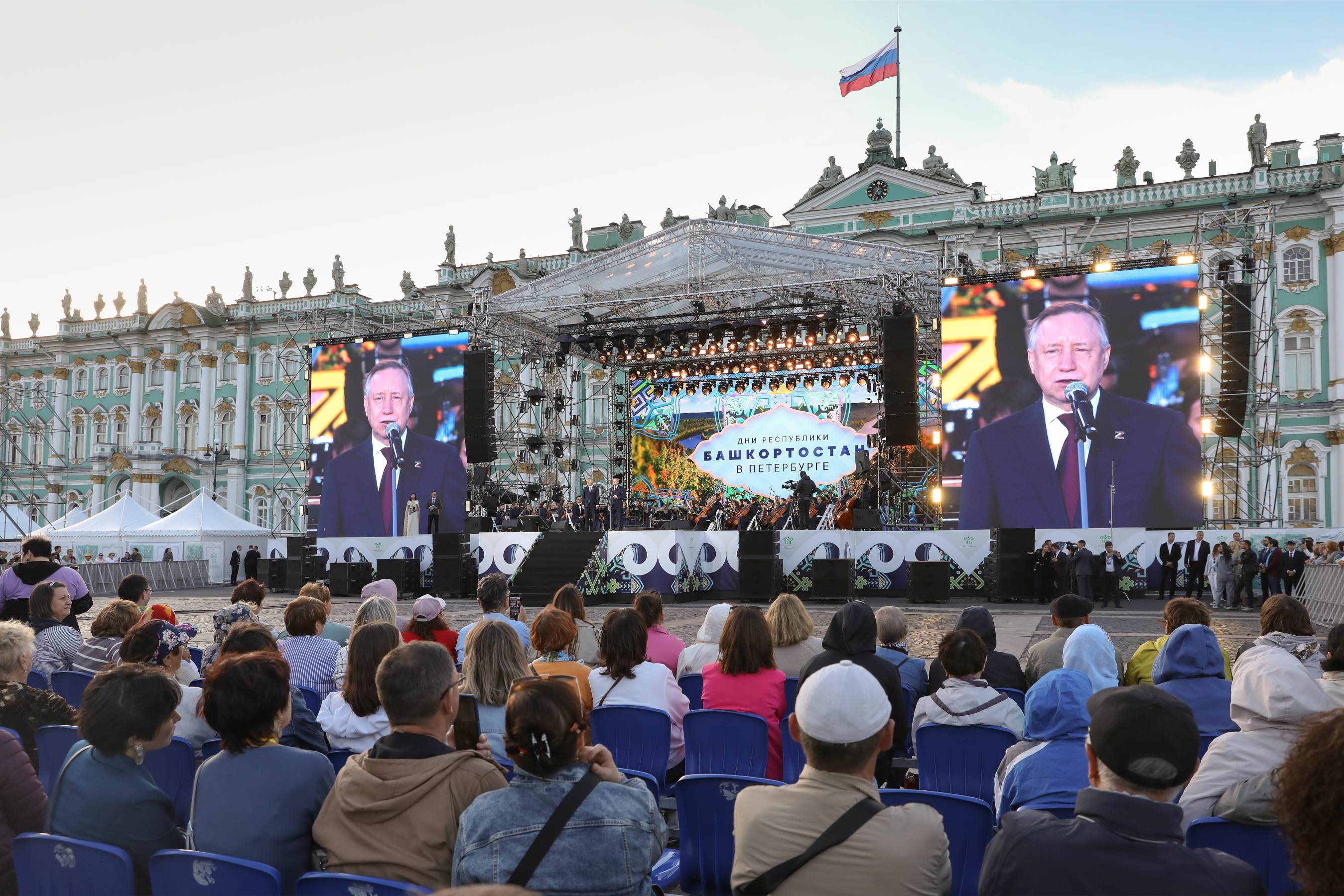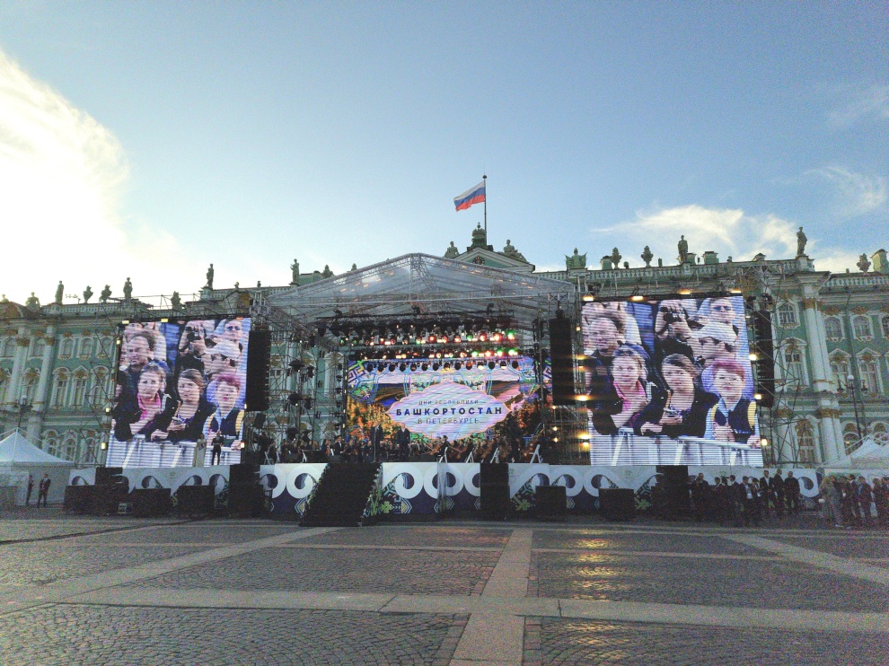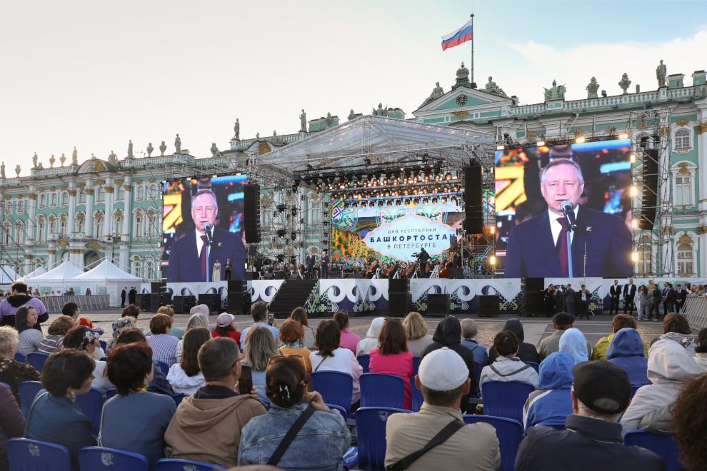 Завершился день концертом на Дворцовой площади «Башкортостан собирает друзей». Перед петербуржцами выступили мастера искусства Республики Башкортостан. Специальными гостями были солисты Мариинского театра, народные артисты Башкортостана Аскар и Ильдар Абдразаковы, а также народный артист России и Башкортостана Николай Басков.