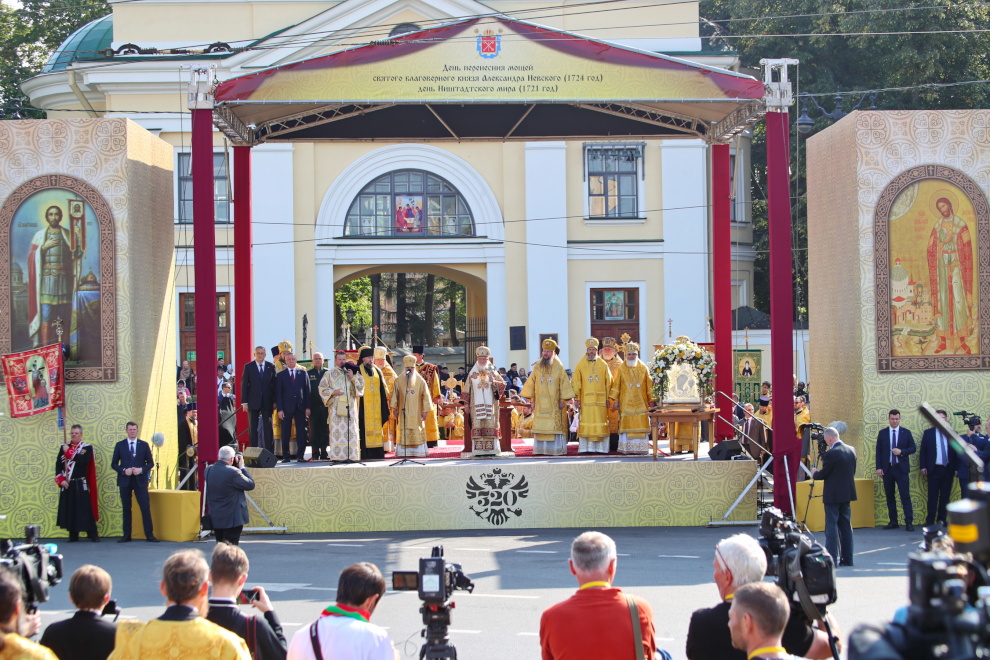 Главным событием сегодняшних торжеств стал освящение раки Александра Невского, которая передана из Государственного Эрмитажа в Свято-Троицкую Александро-Невскую лавру. Мощи святого, хранящиеся в лавре, будут помещены внутрь ковчега.
