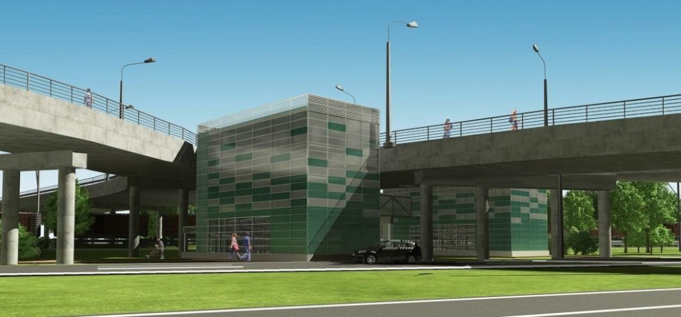 Сейчас компания-подрядчик ведет работы по сооружению надземного пешеходного перехода. Он будет представлять собой два строения, соединенные галереей протяженностью 23 метра.
