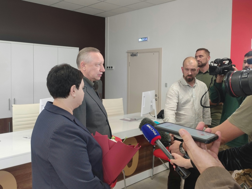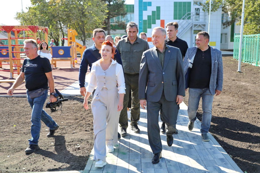 Губернатор побывал во веденных в августе 2023 года детском саду "Диоскурия" на 220 мест и Многофункциональном центре. Оба объекта построены петербургскими специалистами.