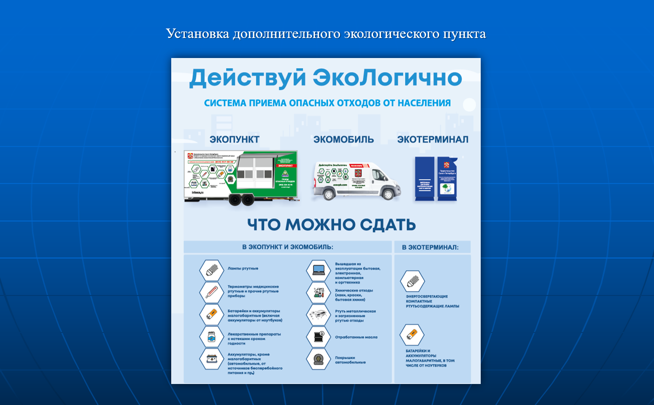 Город активно развивает систему сбора таких отходов с 2021 года. За это время число экопунктов в Петербурге увеличилось с 4 до 18. Они есть во всех районах. В 2024 году планируется открыть еще 5 пунктов, в том числе дополнительный пункт в Выборгском районе. Также работают два экомобиля и 505 экологических терминалов.