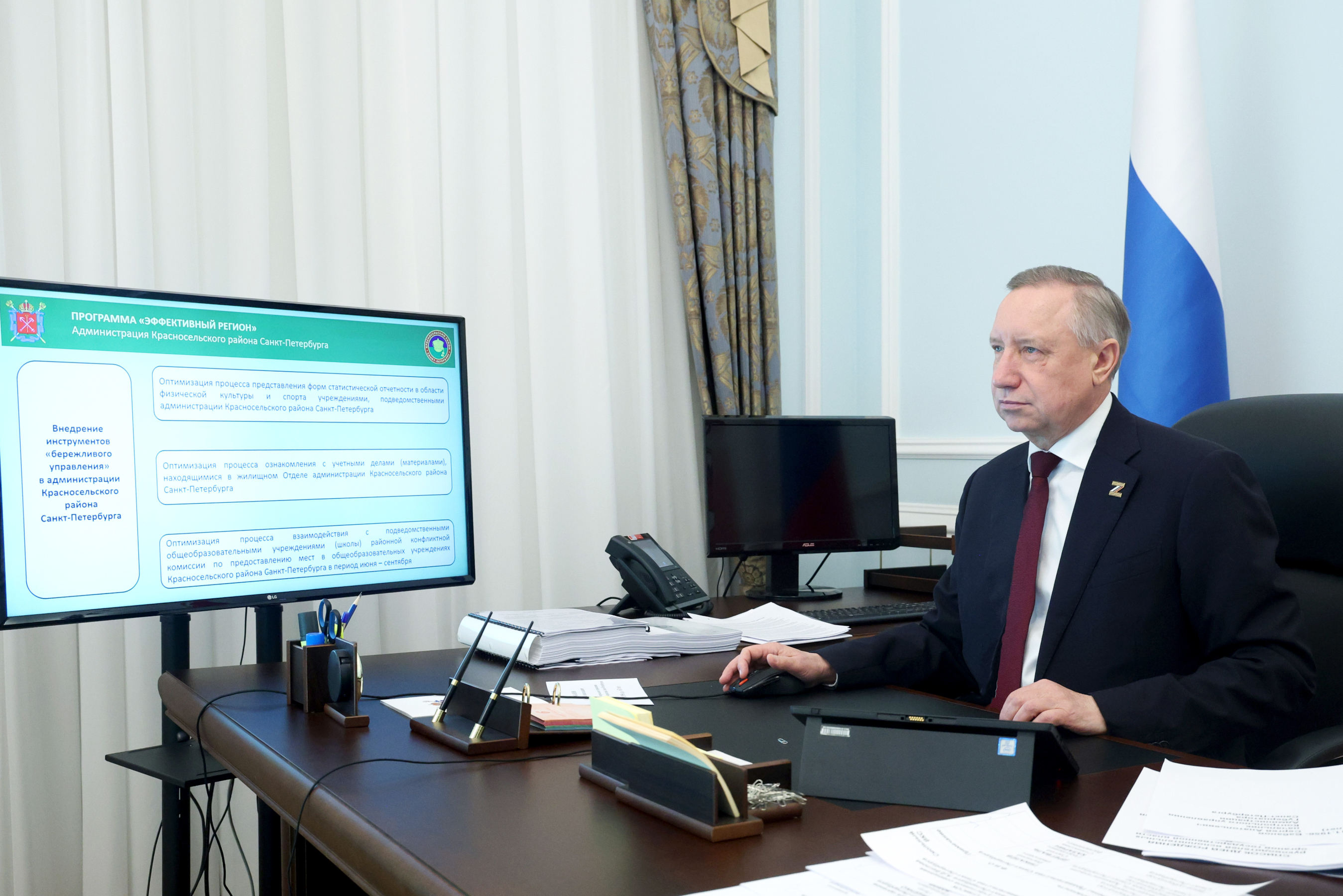 На рабочем совещании губернатора Александра Беглова с членами городского правительства был заслушан отчёт о реализации программы «Эффективный регион» администрацией Красносельского района.