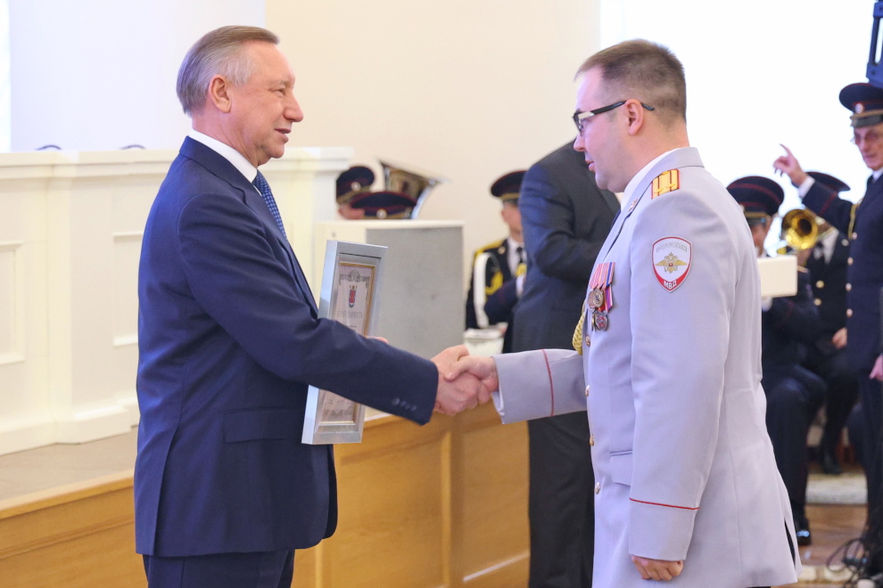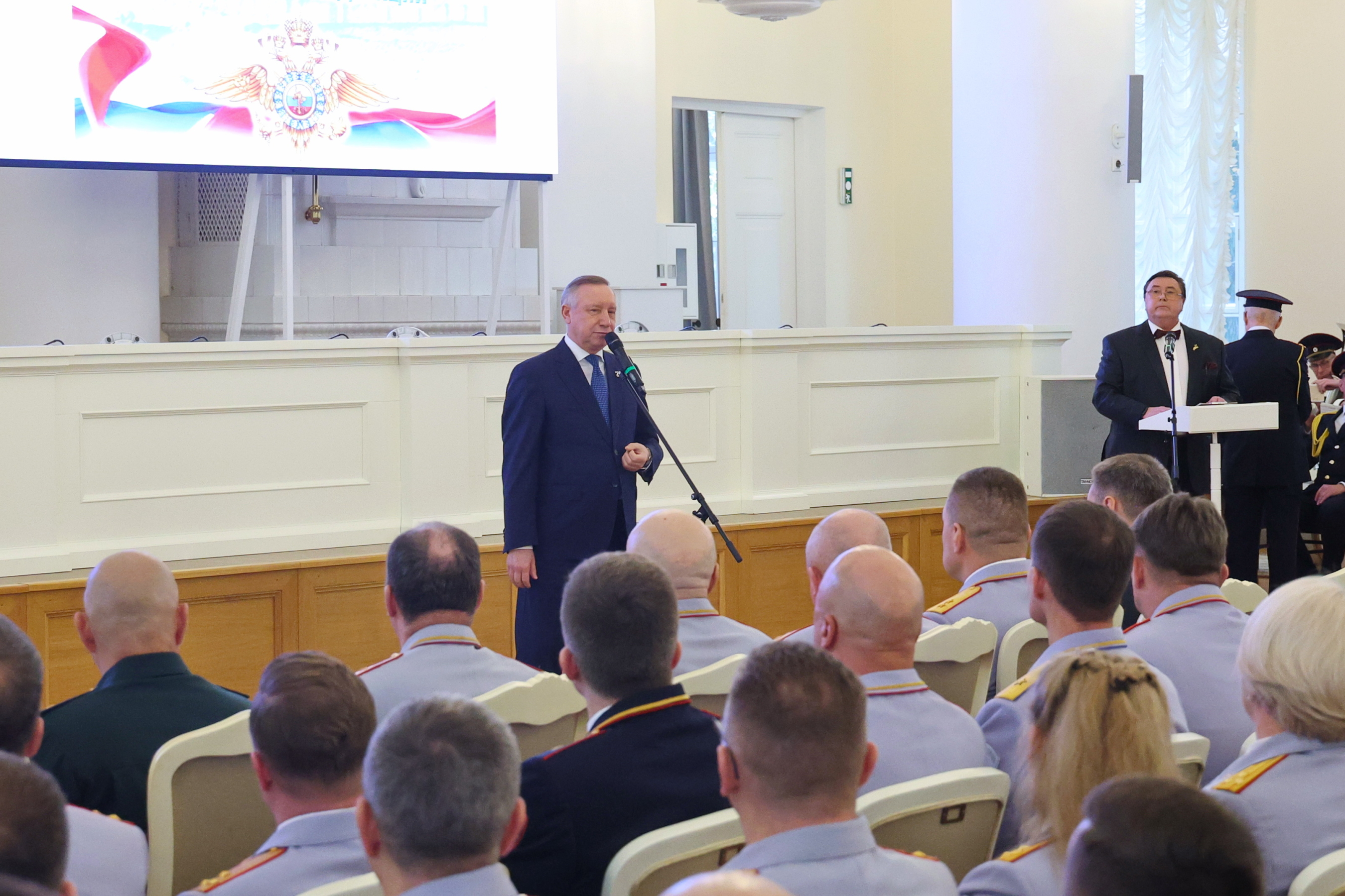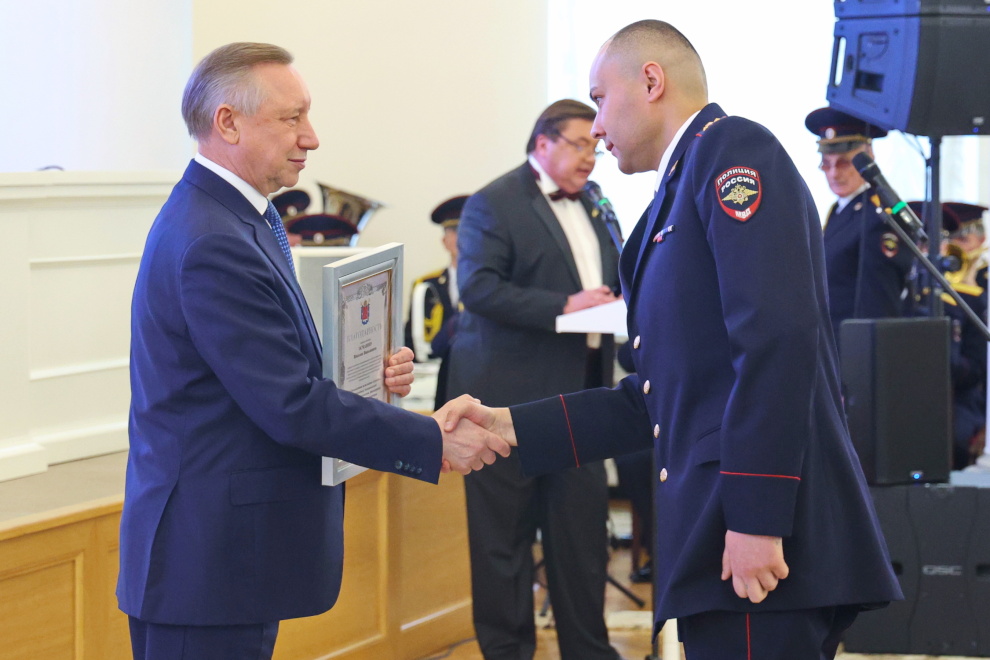 В Смольном состоялось торжественное собрание, посвященное Дню сотрудника органов внутренних дел Российской Федерации. С профессиональным праздником петербургских полицейских поздравили губернатор Александр Беглов, председатель Законодательного собрания Санкт‑Петербурга Александр Бельский и начальник Главного управления МВД России по Санкт‑Петербургу и Ленинградской области, генерал-лейтенант полиции Роман Плугин.