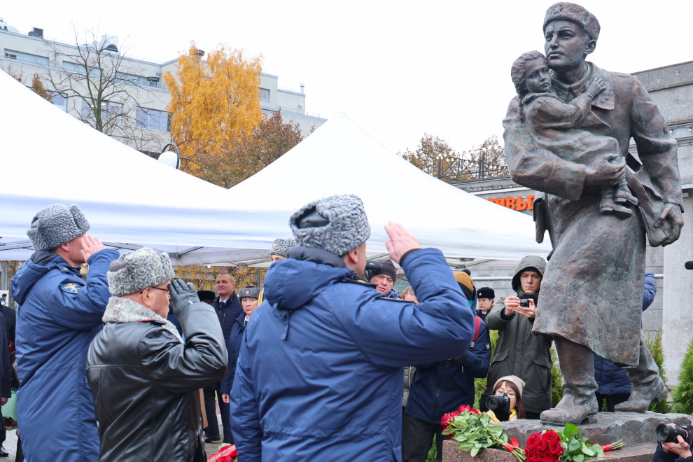 В День сотрудника органов внутренних дел на площади Стачек открыли памятник, посвящённый подвигу участкового уполномоченного сержанта Павла Винокурцева.