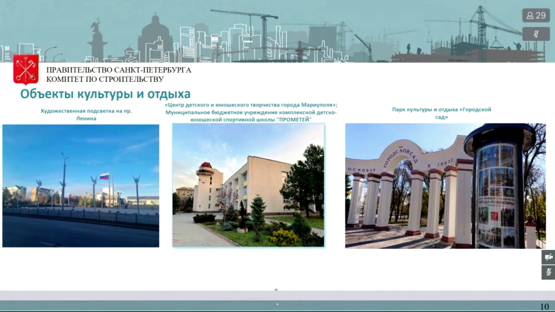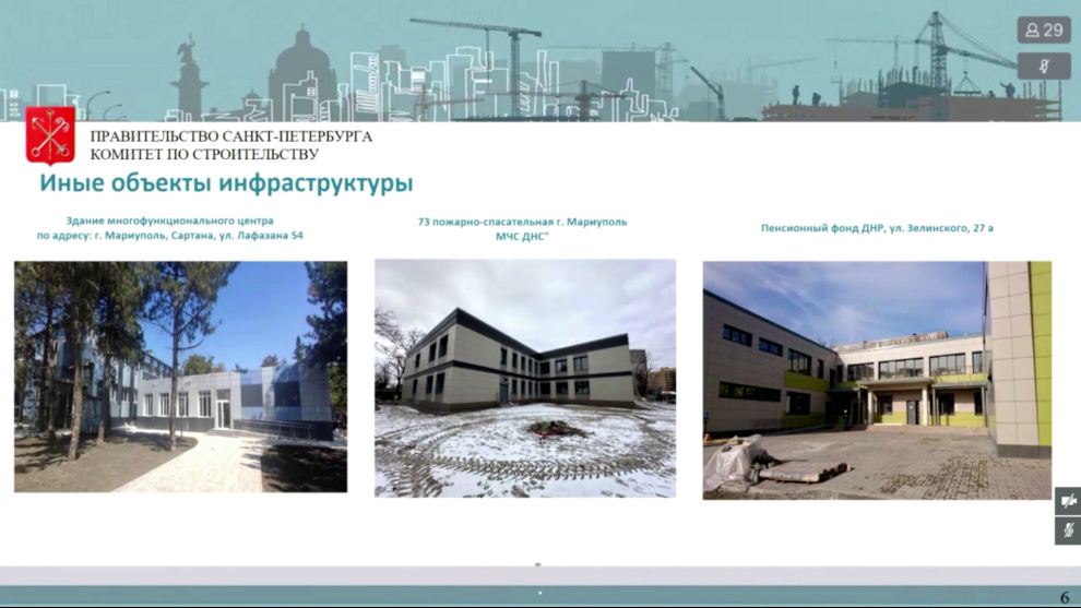 Об этом в ходе совместного заседания исполнительных руководящих органов городов-побратимов под председательством губернатора Санкт‑Петербурга Александра Беглова и временно исполняющего полномочия главы муниципального образования городского округа Мариуполь Олега Моргуна сообщил председатель Комитета по строительству Игорь Креславский.