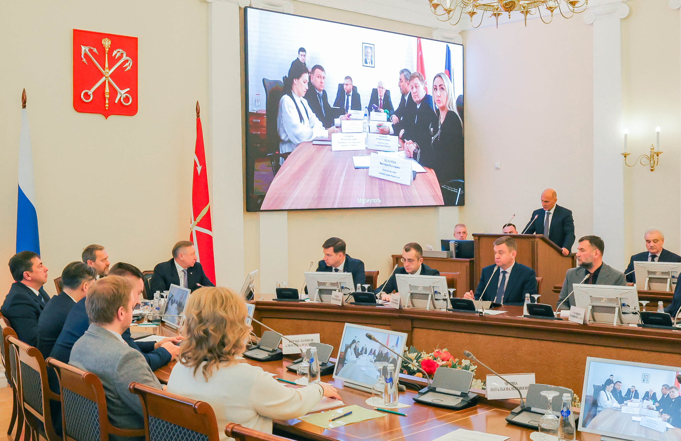 Основной темой заседания стали итоги работ по восстановлению социальной, транспортной инфраструктуры, жилья и общественных пространств Мариуполя за 2022-2023 годы. Совещание прошло в режиме видеоконференции. В его работе принял участие председатель Законодательного Собрания Александр Бельский. В Мариуполе также находился вице-губернатор Санкт‑Петербурга Валерий Пикалев.